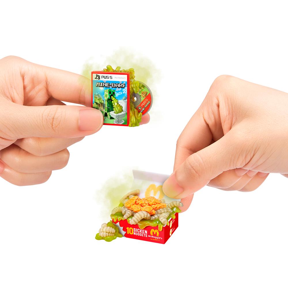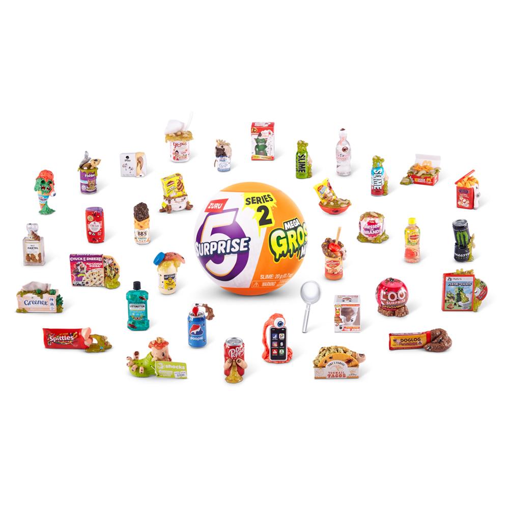 5 Surprise Mega Gross Minis Série 2 Prepare-se para uma dose extra de nojeira e diversão com o 5 Surprise Mega Gross Minis Série 2! Cada cápsula traz 5 surpresas grotescas, com minis de paródias hilárias, efeitos especiais como brilho tóxico, cheiro fedido e até líquido de verdade. São mais de 40 novos itens com visual repulsivo e criativo que transformam produtos do dia a dia em versões nojentas e engraçadas. Um brinquedo irreverente, perfeito para quem curte humor escrachado e muita surpresa a cada abertura. Mega Gross Minis – suas marcas favoritas, como você nunca viu!