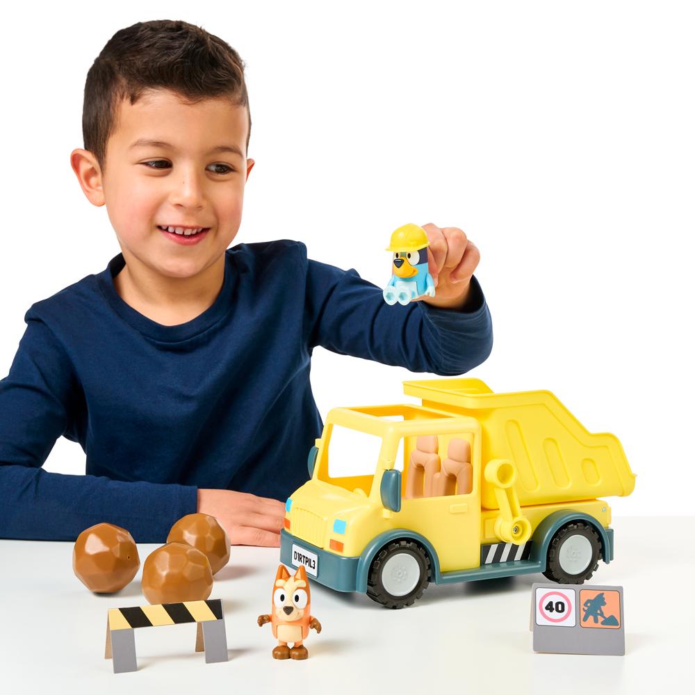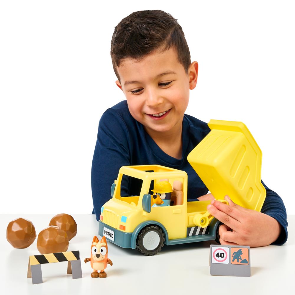 Prepare-se para viver grandes aventuras com o Caminhão Basculante da Bluey! Inspirado no divertido universo da série animada, este playset encantador vem com figuras exclusivas da Bluey usando capacete de segurança e da Bingo coberta de lama, prontas para colocar a mão na massa As figuras articuladas de 6,35 cm podem ser posicionadas na cabine do caminhão para dirigir e brincar de verdade Com uma alavanca funcional, a caçamba do caminhão bascula para carregar e descarregar as três grandes pedras inclusas, proporcionando uma brincadeira interativa e realista Além disso, o conjunto acompanha placas de sinalização e uma cartela de adesivos para personalizar o veículo e estimular ainda mais a imaginação das crianças O Caminhão Basculante Bluey é perfeito para fãs da série que adoram transformar o cotidiano em aventuras criativas e cheias de diversão!