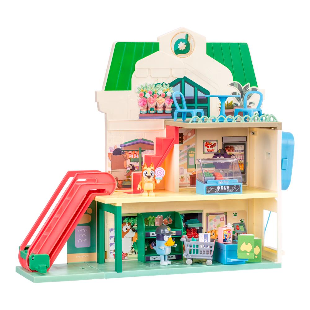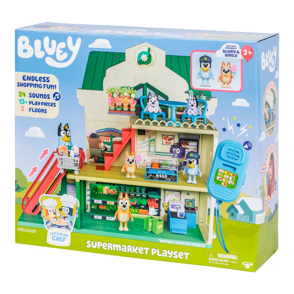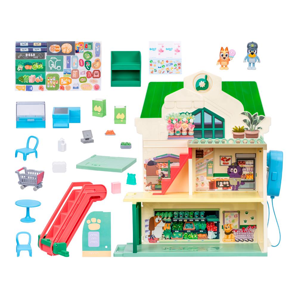 Transforme a hora da brincadeira em uma aventura animada com o Playset Supermercado da Bluey! Inspirado nos episódios mais divertidos da série, este playset completo convida as crianças a fazer compras com Bluey e Bingo, explorar prateleiras recheadas de produtos e até aproveitar uma refeição no restaurante do andar superior A diversão ganha vida com 24 frases icônicas da série, interfone com efeitos sonoros, 13 acessórios realistas e 2 figuras exclusivas superdetalhadas Ideal para recriar cenas favoritas ou inventar novas histórias cheias de imaginação, o Supermercado da Bluey é o presente perfeito para pequenos fãs que adoram brincar de faz de conta com seus personagens preferidos
