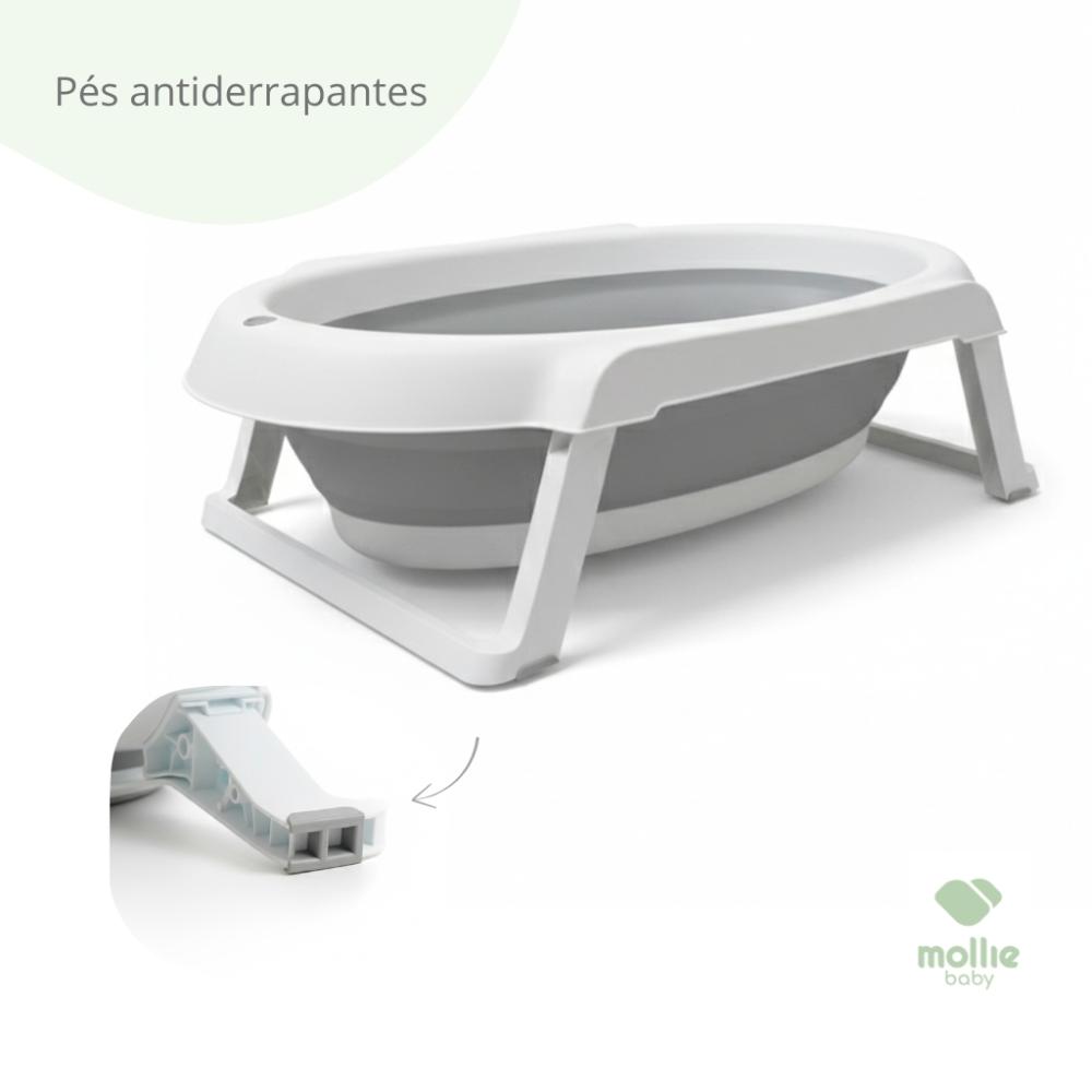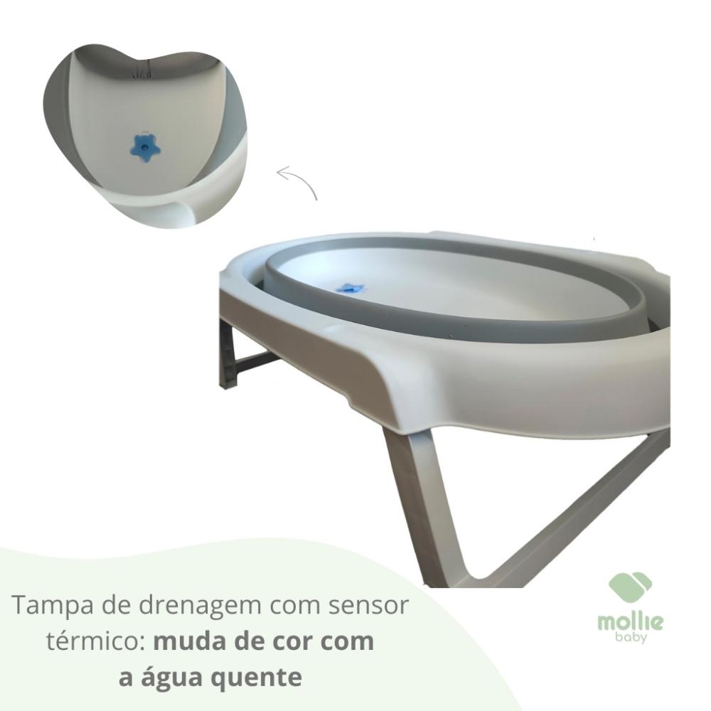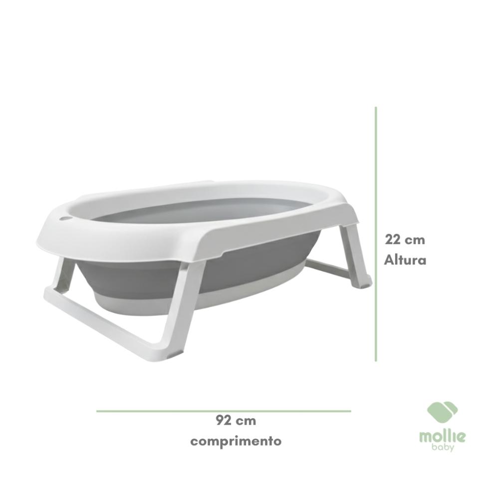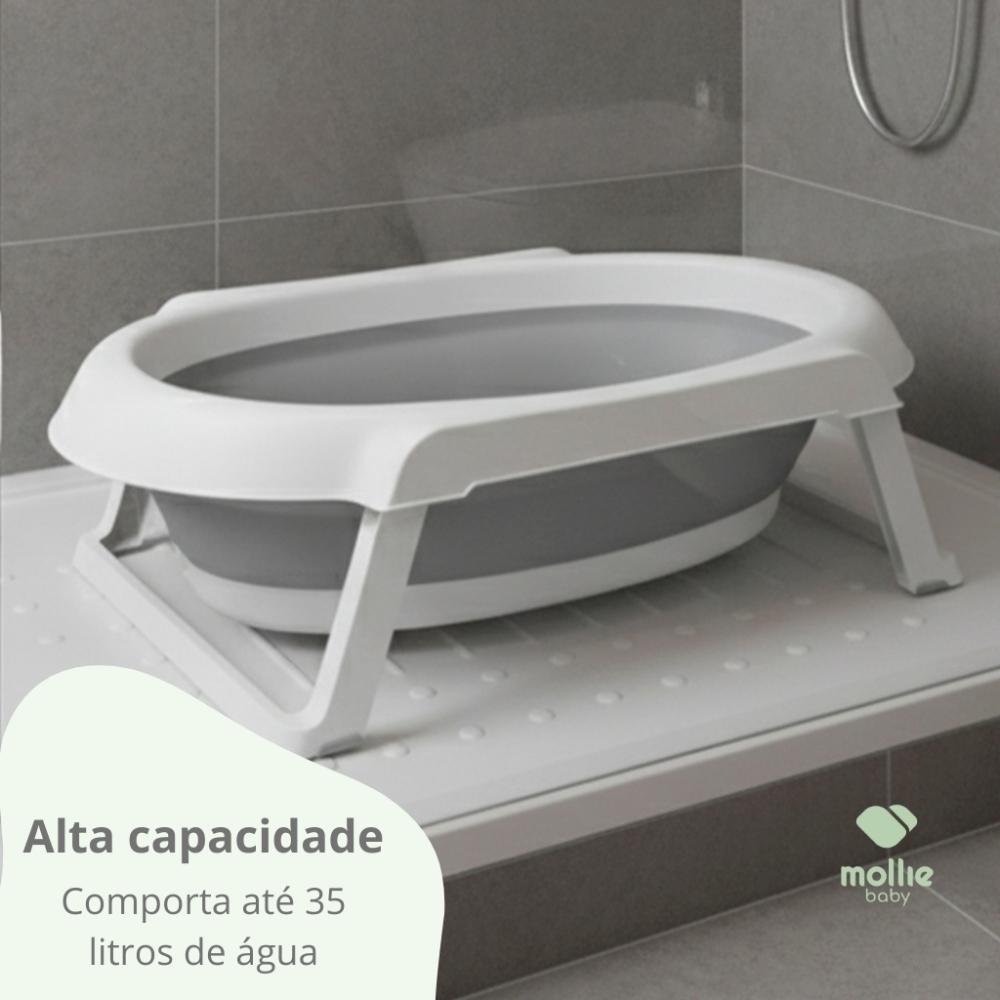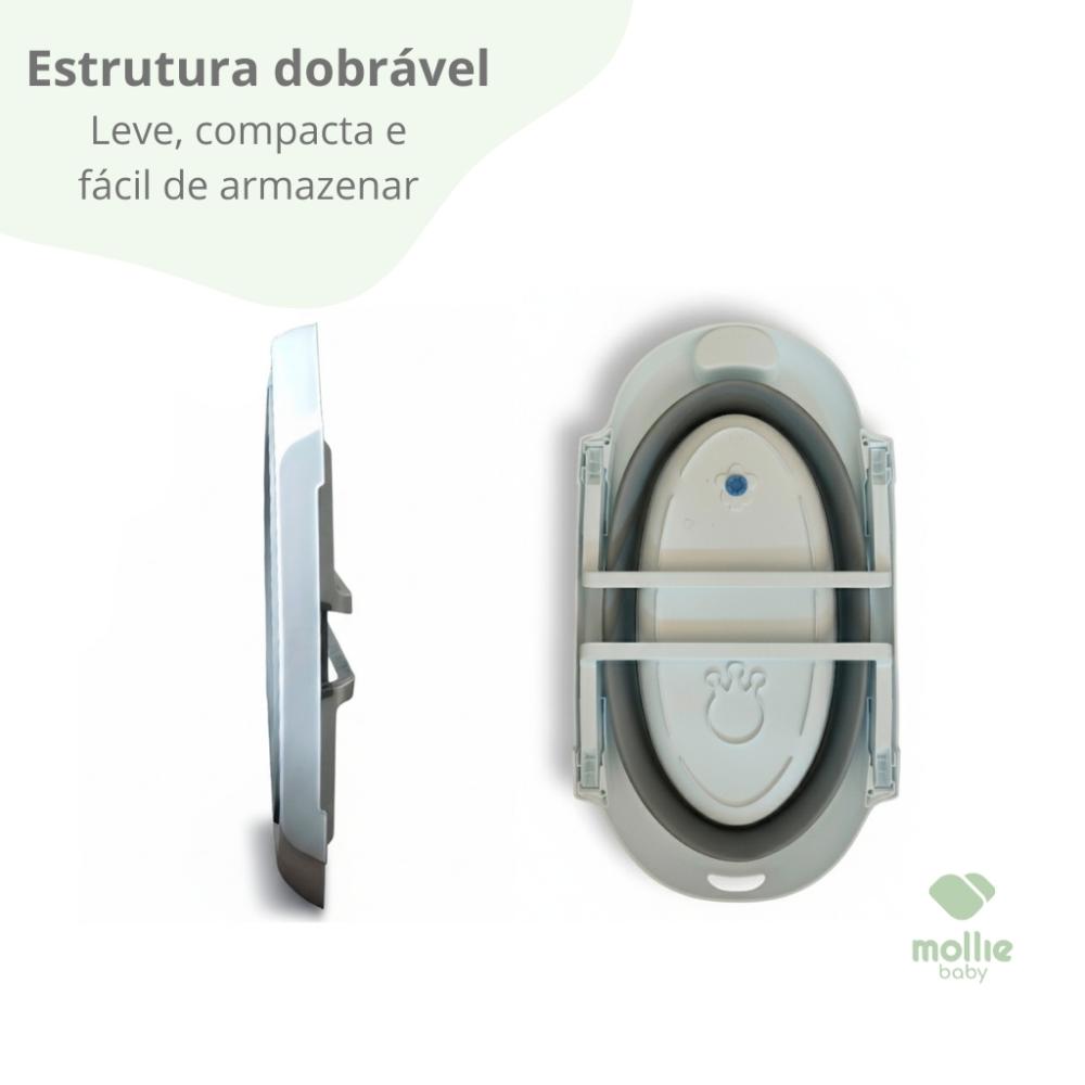 Banheira de Bebê Dobrável Portátil com Almofada – Mollie BabyCom capacidade de até 35 litros, a Banheira Dobrável Mollie Baby foi desenvolvida para tornar o momento do banho mais relaxante, prático e confortável, tanto para o bebê quanto para quem cuida. Com design compacto e almofada ergonômica, ela possui suporte para sabonete e sensor térmico na válvula de drenagem, que muda de cor com a água quente. Ideal para acompanhar desde os primeiros dias até os 3 anos de idade, pode ser usada em qualquer lugar. Dobrável e compacta, pode ser guardada em diversos locais, oferecendo uma experiência completa, com todo o cuidado necessário.Características do Produto:• Alta Capacidade: Comporta até 35 litros de água, ideal para um banho relaxante.• Almofada ergonômica com 3 alças ajustáveis: mais conforto e segurança para recém-nascidos• Estrutura dobrável: leve, compacta e fácil de armazenar• Tampa de drenagem com sensor térmico: muda de cor com a água quente• Resistência e Confiança: Suporta até 35 kg no chão, combinando o peso da criança e a água.• Porta-sabonete embutido: tudo à mão durante o banho• Mangueira para escoamento fácil da água• Superfície interna lisa, fácil de higienizar• Design funcional e modernoEspecificações Técnicas:• Indicação de uso: de 0 a 36 meses• Capacidade de água: até 35 litros• Peso máximo suportado: 35 kg (criança + água – uso direto no chão)• Composição: Plástico PP, TPR, almofada em tecido com enchimento de EPS• Dimensões aproximadas aberta: 22 x 48 x 92 cm (AxLxC)• Dimensões aproximadas fechada: 6 x 48 x 92 cm (AxLxC)• Peso do Produto: 2 kg• Garantia do fornecedor: 3 meses• Conteúdo da Embalagem: Banheira Dobrável; Válvula de Silicone; Almofada de Banho; Componentes de Drenagem; 1 Mangueira de Drenagem.O banho é um momento de carinho e cuidado, e com a Banheira Dobrável Mollie Baby, ele fica ainda mais seguro e prático. Garanta agora mesmo a sua e tenha mais tranquilidade no dia a dia com o seu bebê!