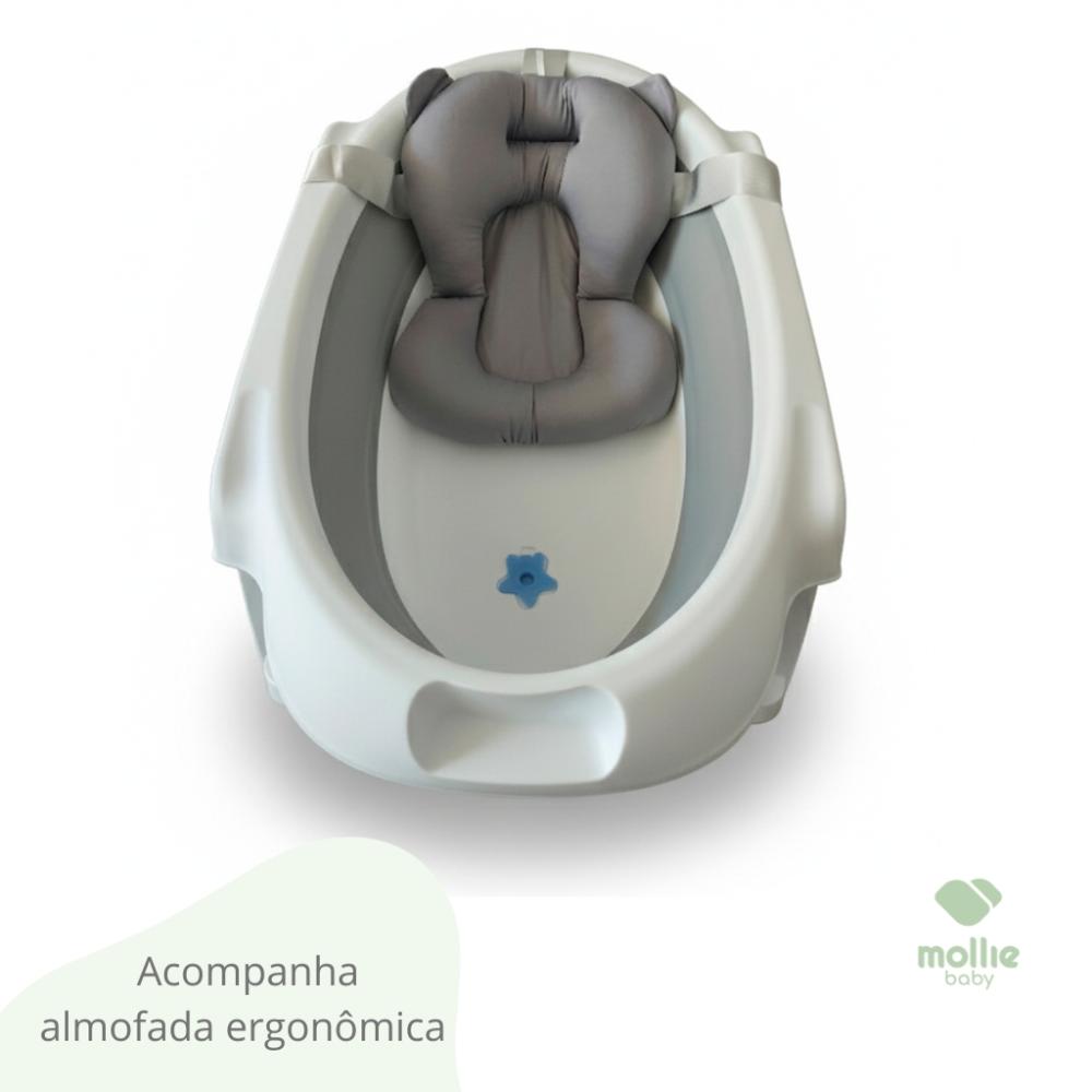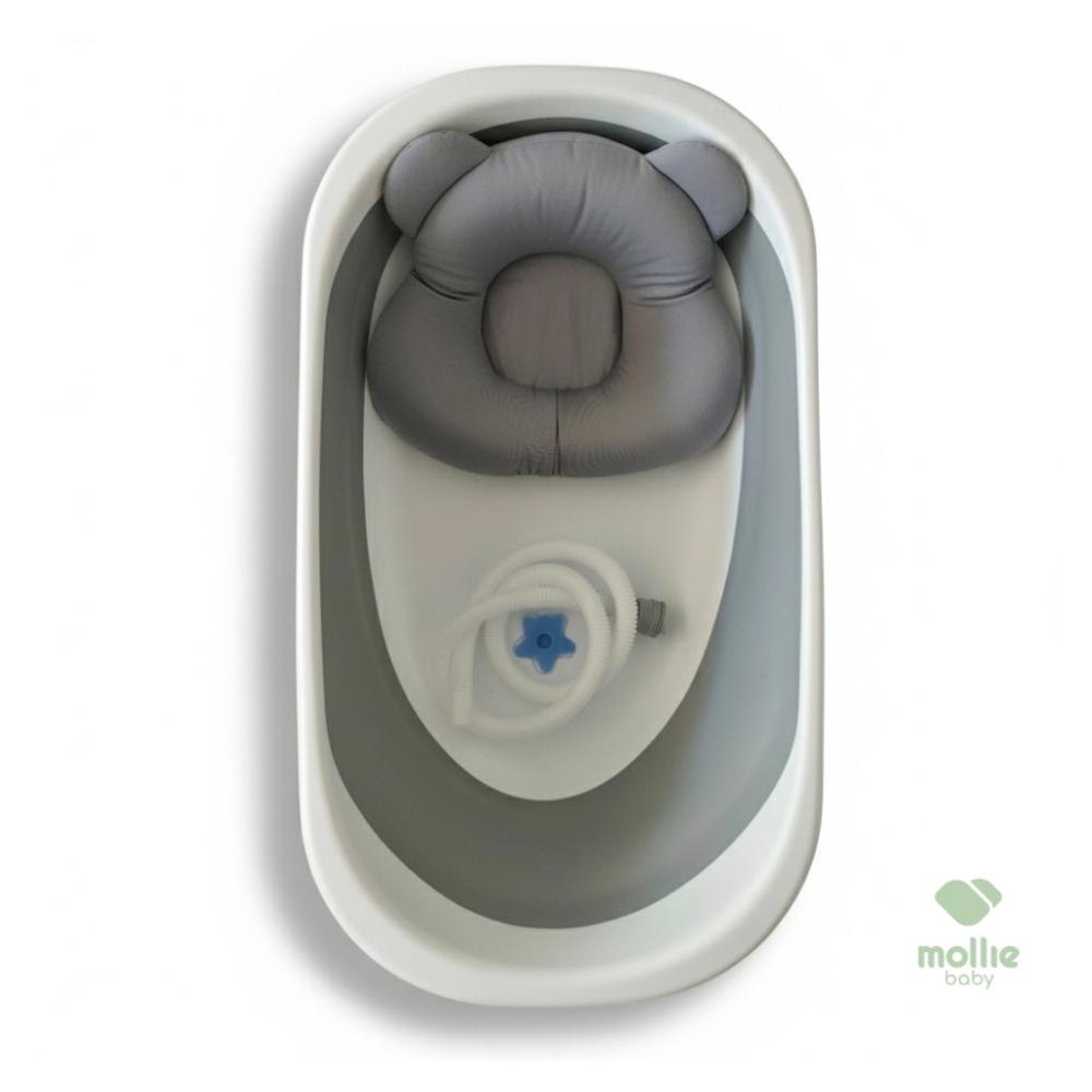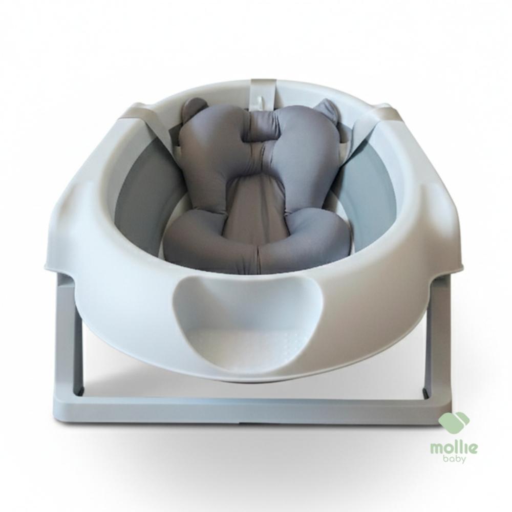 Banheira de Bebê Dobrável Portátil Até 35 Litros com Almofada de Banho Cinza - Mollie Baby
