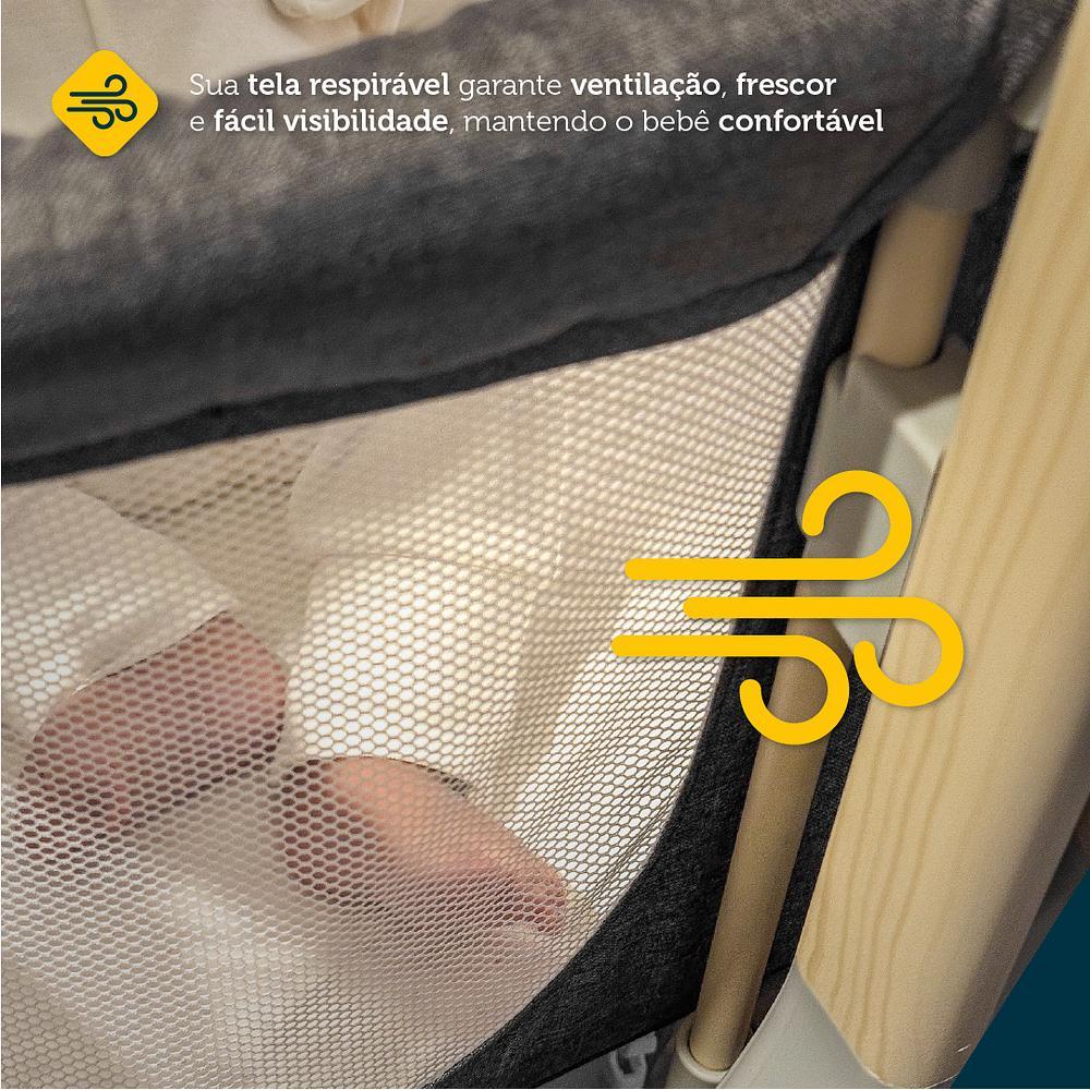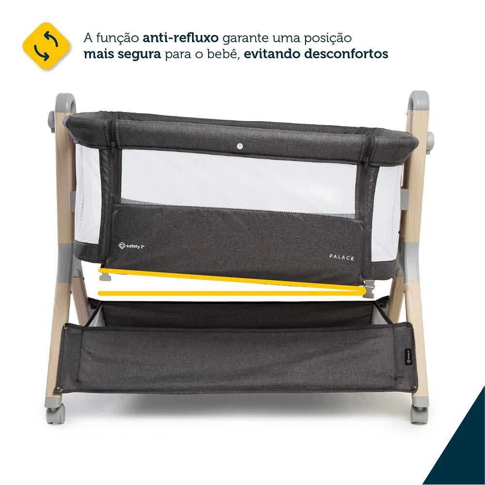 Berço Portátil Co-Bed Palace - Safety 1st O Co-Bed Palace da Safety 1st combina o conforto de uma cama com a segurança necessária para o bebê e a praticidade que os pais procuram. Colocar o bebê para dormir não precisa ser complicado. O Co-Bed Palace foi feito para facilitar esse momento, mantendo o bebê em seu próprio espaço, mas sempre por perto. Ideal para quem valoriza praticidade no dia a dia.Características: • Indicado para bebês desde os primeiros dias até 9 kg. • Função de Inclinação Ajustável: Garante uma posição segura e confortável. • Altura Ajustável: Se adapta à maioria das camas, facilitando o acesso durante a noite. • Tela Respirável: Promove excelente ventilação e visibilidade. • Mosquiteiro: Proteção extra contra insetos. • Rodinhas: Facilidade de movimentação e posicionamento. • Estrutura Leve: Facilita o transporte e uso diário.Especificações Técnicas: • Capacidade: Até 9 kg • Ajuste de Altura: Compatível com a maioria das camas • Inclinação: Ajustável • Material: Estrutura leve e tela respirável • Rodas: Com travas de segurança • Peso do Produto: 8 kg • Dimensões: 96 x 58 x 66 cm (alt. max.) • Certificação INMETRO: ABNT NBR 15860, até 9 kg • Garantia do fornecedor: 12 mesesSegurança e praticidade se unem no Co-Bed Palace da Safety 1st. Uma excelente escolha para pais que valorizam noites tranquilas e cuidados de qualidade. Adquira hoje mesmo e tenha essa tranquilidade ao seu alcance!