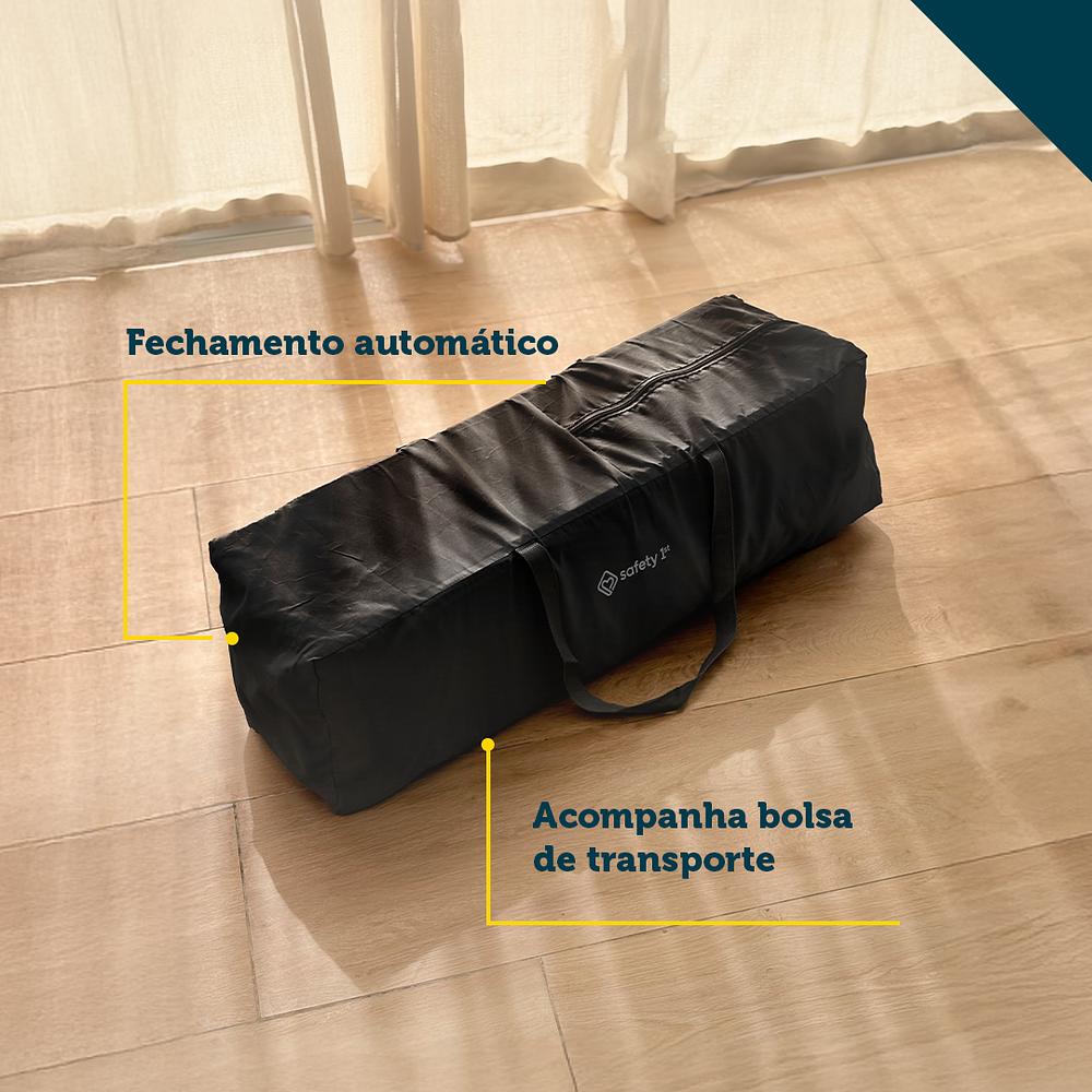 Berço Portátil Falcon - Safety 1stElegante e seguro, o berço portátil Falcon da Safety 1st é a escolha perfeita para acompanhar os primeiros anos do seu bebê.Características: • Capacidade: Suporta até 20 kg, a maior do mercado. • Duas Alturas Ajustáveis: Acompanha as diferentes fases de crescimento do bebê. • Fechamento Automático: Fácil e rápido, ideal para a correria do dia a dia. • Entrada Montessoriana: Facilita o acesso e interação com o bebê. • Mosquiteiro Arcado: Com abertura central para retirar o bebê sem complicações. • Trocador Acoplado: Praticidade em um único produto. • Rodas Integradas: Para um deslocamento fácil dentro de casa. • Bolsa de Transporte: Perfeita para levar o berço em viagens. • Bolso Lateral: Mantém os itens essenciais sempre à mão.Especificações Técnicas • Peso Suportado: Até 20 kg • Alturas Ajustáveis: Duas posições para o colchão • Fechamento: Automático • Entrada Montessoriana: Sim • Mosquiteiro: Arcado com abertura central • Trocador: Sim, acoplado • Rodas: Integradas para fácil deslocamento • Bolsa de Transporte: Inclusa • Bolso Lateral: Sim • Peso do Produto: 9.8 kg • Dimensões (A x L x P): 110 x 70 x 75 cm • Garantia do fornecedor: 12 meses.Com sua combinação de espaço, segurança e praticidade, o berço portátil Falcon Grey Night é ideal para qualquer fase do seu bebê. Adquira agora e garanta conforto e tranquilidade para sua família!