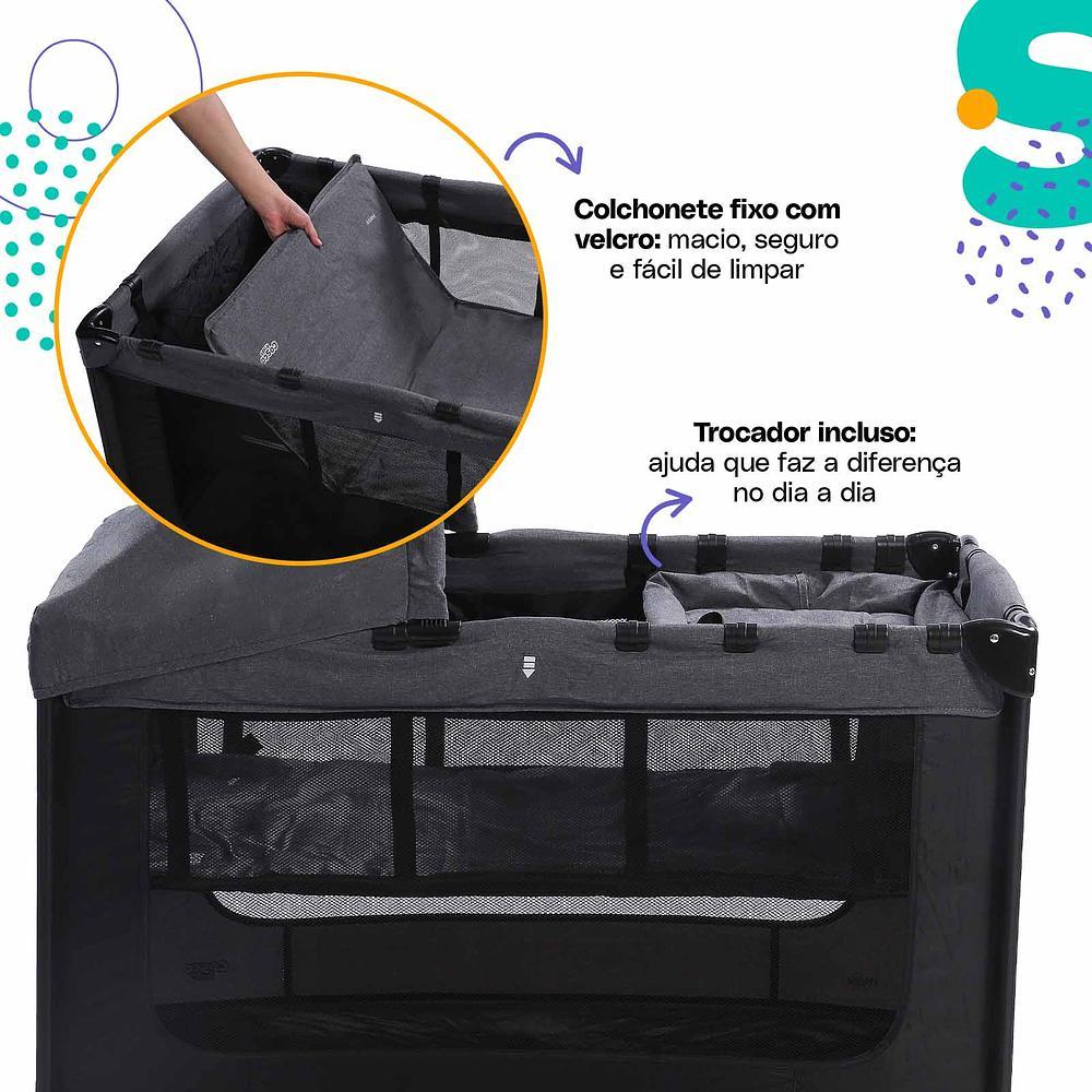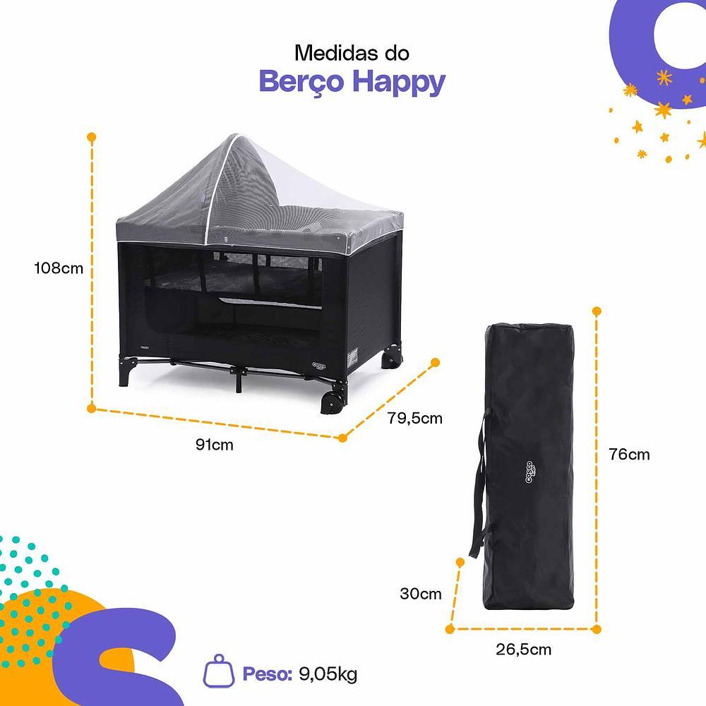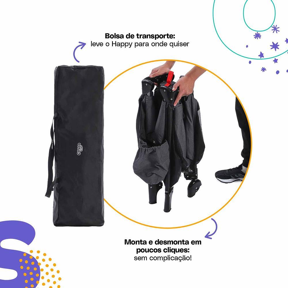 Berço Portátil Happy Preto Mescla - Cosco Kids