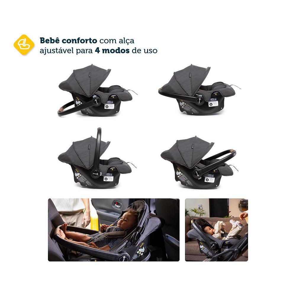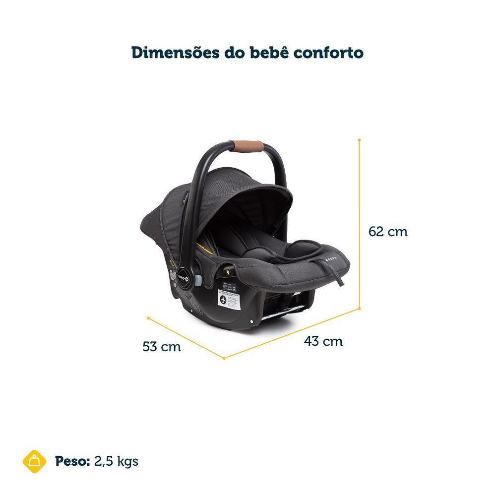 Carrinho Spark Plus com Bebê Conforto e Base Travel System Trio - Safety 1stO Travel System Spark Plus Trio Safety 1st reúne carrinho, bebê conforto e base veicular em um único conjunto que combina conforto, segurança e praticidade. Leve, moderno e fácil de manusear, ele acompanha o bebê desde o nascimento até 22 kg, oferecendo uma experiência completa para o dia a dia e para viagens em família.Características do ProdutoCarrinho Spark Plus:• Estrutura em alumínio leve e resistente, fácil de transportar.• Assento acolchoado com toque macio e encosto reclinável em 4 posições.• Apoio para os pés ajustável em 2 níveis para acompanhar o crescimento do bebê.• Fechamento automático com uma mão, supercompacto e prático.• Capota ampla com aba de sol e proteção UV50+.• Amortecedores nas quatro rodas e rodas dianteiras com giro 360°, garantindo passeios suaves.• Cinto de segurança de 5 pontos, ajustável em altura e largura, com protetores acolchoados.• Freio centralizado e suspensão total, proporcionando mais estabilidade.• Cesto porta-objetos espaçoso com capacidade para até 3 kg.• Manopla e barra frontal com revestimento especial para mais conforto e estilo.• Compatível com o bebê conforto 4Safe, através de adaptadores inclusos.Bebê Conforto 4Safe:• Uso desde o nascimento até 13 kg (Grupo 0+).• Redutor e apoio de cabeça acolchoados e reposicionáveis, garantindo ergonomia e conforto.• Instalação belted com o cinto de 3 pontos do veículo, de costas ao movimento.• Capota retrátil com proteção UV50+, para proteger o bebê do sol.• Cinto de segurança de 3 pontos com ajuste de altura e largura.• Alça ergonômica com 5 modos de uso: transportar, acoplar no carrinho, fixo, balanço e instalar no veículo.• Revestimento macio e almofadas com toque extra suave.• Compatível com carrinhos Safety 1st e com o Spark Plus.• Aprovado para uso em aeronaves (consulte a companhia aérea).Base veicular Zion:• Compatível com o bebê conforto 4Safe (Grupo 0+).• Facilita a instalação no veículo com cinto de 3 pontos.• Fixação rápida e desencaixe simples, através de botão de liberação.• Indicação de passagem de cinto demarcada, garantindo segurança na instalação.• Material leve e resistente, projetado para uso prático no dia a dia.• Compacta e fácil de armazenar dentro do veículo.Especificações TécnicasCarrinho Spark Plus:• Uso recomendado: 0 a 22 kg• Dimensões (A x L x P | cm): 100,5 x 44,5 x 88,5 | Fechado: 62,5 x 44,5 x 28• Peso: 8 kg• Reclinável: 4 posições• Apoio para os pés: ajustável em 2 posições• Capota: ampla com aba de sol e proteção UV50+• Cesto: capacidade para 3 kg• Rodas: 4 rodas com giro 360° e suspensão total• Freio: centralizado• Material/Composição: Aço, Alumínio, PU, Poliéster• Certificação INMETRO: NBR 14389-2:2022 | Registro 003656/2025Bebê Conforto 4Safe:• Uso recomendado: 0 a 13 kg (Grupo 0+)• Instalação: cinto de 3 pontos, de costas ao movimento do veículo• Dimensões (A x L x P | cm): 62 x 43 x 53• Peso: 2,5 kg• Material/Composição: HDPE, Poliéster• Certificação INMETRO: NBR 14400:2020 | Registro 008019/2021Base Zion:• Dimensões (A x L x P | cm): 51 x 36 x 16• Peso: 1,54 kg• Uso recomendado: 0 a 13 kg• Material/Composição: Plástico resistente• Referência: BDRC003Conteúdo da Embalagem:• 1 carrinho Spark Plus, 1 bebê conforto 4Safe, 1 base Zion, 1 par de adaptadores, 2 manuais.• Garantia do fornecedor: 12 meses• Imagens meramente ilustrativas.O Travel System Spark Plus Trio Safety 1st é o conjunto completo que facilita o dia a dia das famílias modernas. Leve, compacto e cheio de conforto, ele acompanha todas as fases do bebê com segurança, praticidade e muito estilo.