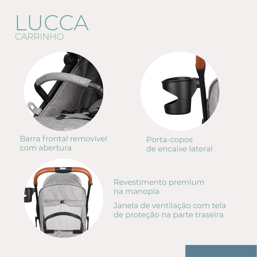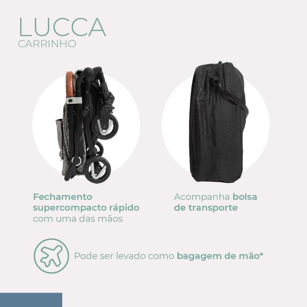 Carrinho de Bebê Lucca - Safety 1stApresentamos o Carrinho de Bebê Lucca da Safety 1st, uma solução prática e leve que oferece facilidade e conforto para os pais no dia a dia.Características Principais:•Acompanha o crescimento: Indicação de 0 a 15 Kg• Fechamento Super Compacto: Com um simples movimento, o carrinho se fecha de forma compacta e rápida, facilitando o transporte e armazenamento.• Encosto Reclinável em Múltiplas Posições: Acompanha o crescimento do bebê, oferecendo conforto em todas as fases.• Capota com Proteção UV50+: Garante a segurança do bebê contra os raios solares nocivos durante os passeios.• Porta-Copos: Praticidade para os pais, permitindo que atendam a criança com mais tranquilidade ou se refresquem nos dias quentes.• Suspensão nas Rodas: Proporciona um passeio suave e confortável, tanto para o recém-nascido quanto para o maiorzinho.• Janela de Ventilação: Com tela de proteção na parte traseira e elástico para mantê-la aberta, oferece conforto durante a soneca do bebê.• Barra Frontal Forrada: Mais macia para as mãozinhas dos pequenos, com abertura e possibilidade de remoção.• Bolsa de Transporte: Facilita a movimentação do carrinho, tornando-o um companheiro prático para mães, pais e cuidadores.Outras Características:• Uso desde o nascimento até os 48 meses (testado até 22kg em normas internacionais e até 15 kg pelo Inmetro).• Freio de um único ponto de acionamento para maior praticidade.• Cinto de segurança de 5 pontos com protetores acolchoados e ajuste de altura e largura.• Trava de transporte na lateral.• Revestimento especial na manopla para o conforto dos pais ao conduzir o carrinho.O Carrinho de Bebê Lucca da Safety 1st é a escolha perfeita para os pais que buscam praticidade, conforto e segurança em um único produto. Aproveite cada momento com seu bebê com toda a tranquilidade que ele merece.