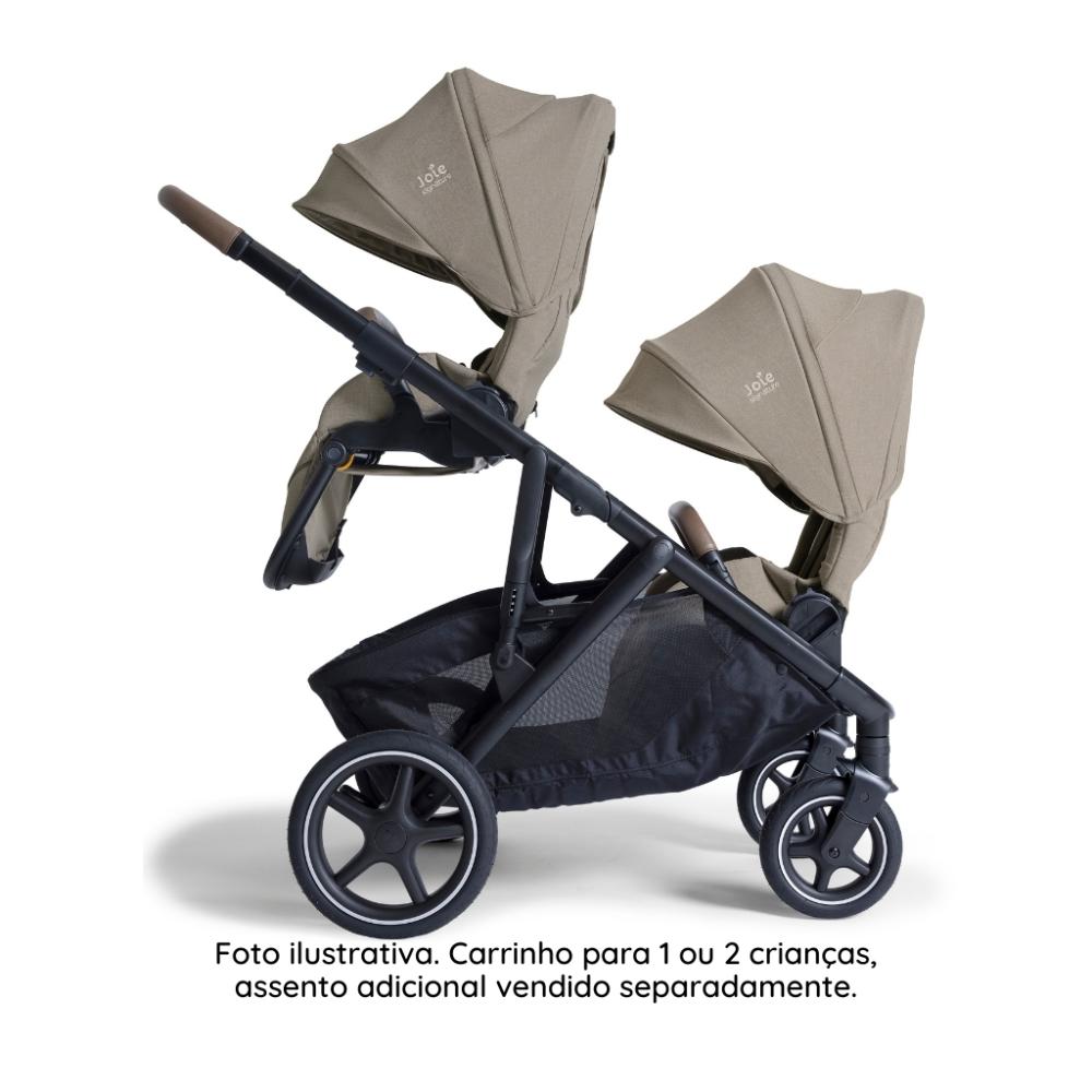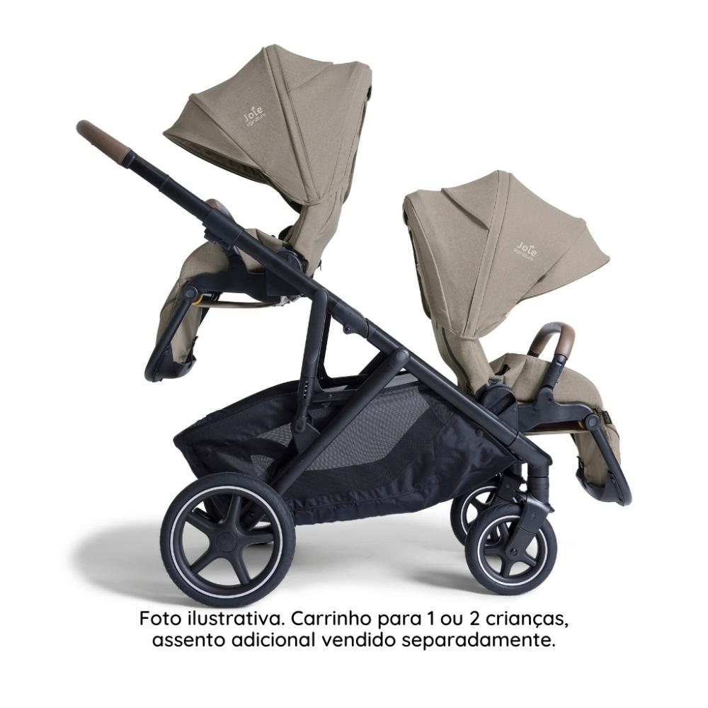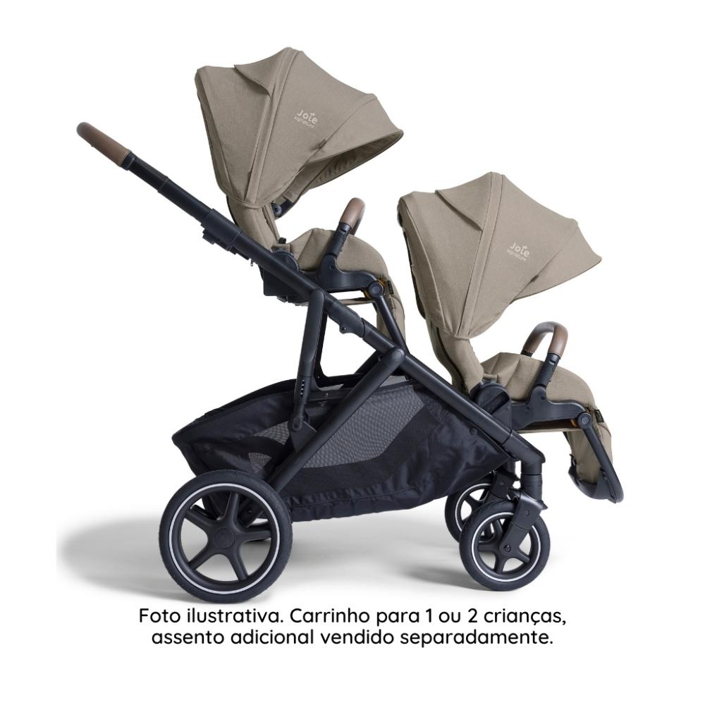 Carrinho de Bebê Versiti - JoieProporcione conforto, segurança e versatilidade para o seu bebê com o Carrinho de Bebê Versiti da Joie. Um carrinho 3 em 1 que acompanha todas as fases do seu pequeno com estilo e praticidade.Com a compra do assento adicional (vendido separadamente), o Versiti se transforma em um carrinho ideal para 2 crianças, perfeito para famílias que crescem!Características: • Indicação: Recomendado desde o nascimento até 22 kg. • 20 Modos de Uso: Compatível com bebês conforto, moisés e cestos automotivos (modelos i-Gemm™ 3, i-Snug™ 2, i-Level™ Pro, sprint™, ramble™, ramble™ xl e calmi™ R129). • Assento Reversível: Voltado para os pais ou para a paisagem. • Ajustável: Três níveis de altura do assento, quatro posições de reclínio e dois ajustes de apoio para as pernas. • Capota Extensível: Proteção solar UPF 50+, ideal para qualquer clima. • Manopla Premium: Ajustável em cinco posições com acabamento em couro ecológico. • Suspensão Completa: Nas quatro rodas com pneus PunctureProof™ (à prova de furos). • Cinto de Segurança: Cinto de 5 pontos com acolchoamento SoftTouch. • Cesto de Armazenamento: Amplo e arejado, com compartimento fechado adicional e cesto extra removível. • Fechamento Prático: Fácil de dobrar, permanece em pé quando fechado.Especificações Técnicas • Peso: 12,4 kg • Dimensões Aberto: 102 x 66 x 120 cm (CxLxA) • Dimensões Fechado: 33 x 66 x 82 cm (CxLxA) • Registro Inmetro: 008521/2025 • Materiais: Tecido, metais e plásticos • Homologação: Certificação européia EN 1888-2:2018 • Acessórios Inclusos: Adaptadores e cesto adicional • Garantia do fornecedor: 24 mesesDescubra o conforto, a segurança e o design moderno do Carrinho de Bebê Versiti da Joie. Uma escolha premium que acompanha o crescimento do seu filho. Surpreenda-se com a versatilidade e faça seu pedido hoje mesmo!