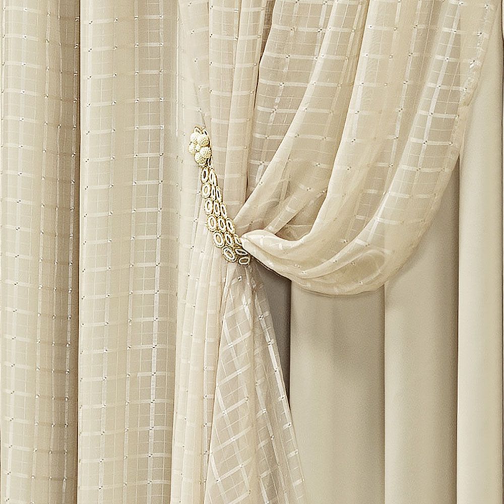 Cortina Marrocos Tecido Blackout e Voal Fitado 3,00m x 2,50m Janela Sala Quarto - Palha