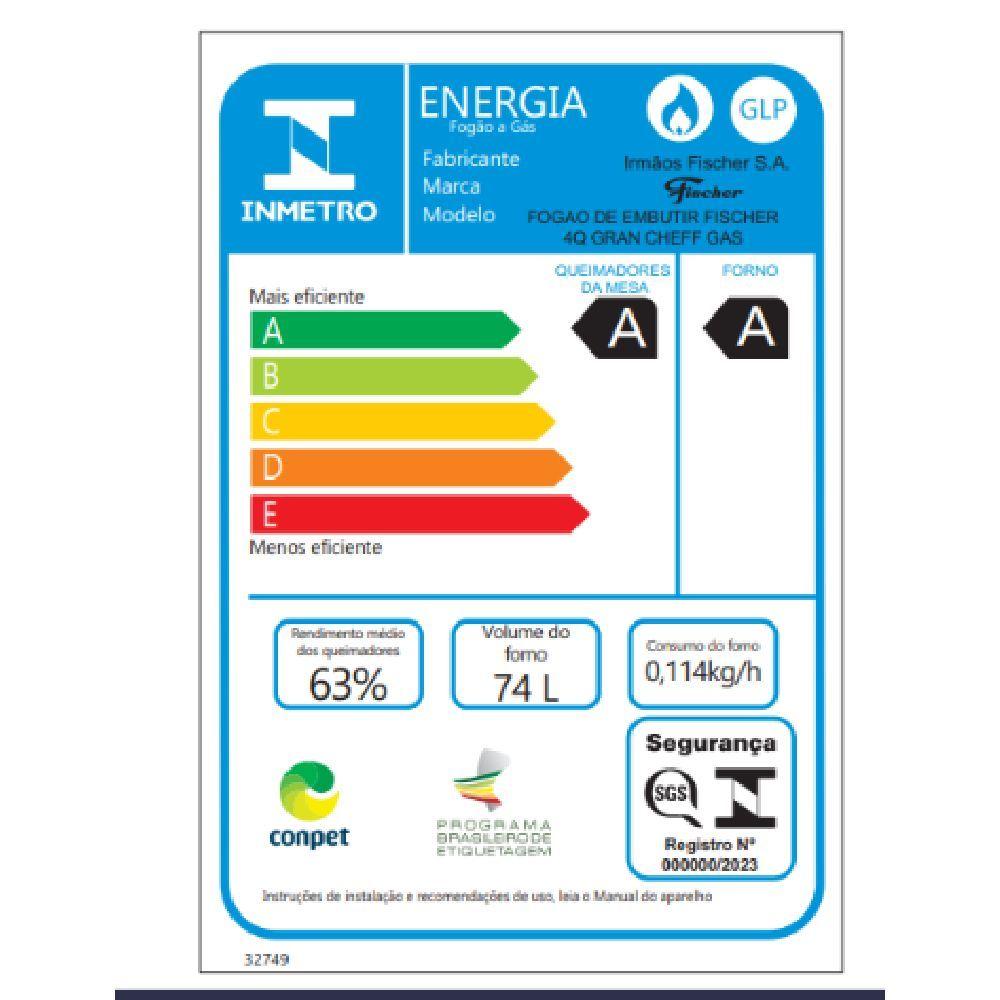 Fogão Fischer Gran Cheff De Embutir 4 Bocas Silver Mesa De Vidro Preto 127V - Transforme sua cozinha com elegância e sofisticação!Apresentamos o Fogão Fischer Gran Cheff, a escolha perfeita para quem vive com leveza e personalidade. Projetado para ser o centro das atenções, este fogão combina design moderno e tecnologia de ponta, garantindo que cada refeição seja uma experiência inesquecível. Estabilidade e Segurança: Com trempes em ferro fundido e borrachas de apoio, suas panelas estarão sempre seguras. Desempenho italiano: Queimadores de alta eficiência que garantem durabilidade e resultados incríveis. Mesa Prática: Vidro temperado com bordas arredondadas para um toque contemporâneo e fácil limpeza. Forno Espaçoso: Com 74L de capacidade, revestimento EasyClean e lâmpada interna, para que você possa acompanhar cada assado sem abrir a porta. Controle Total: Acendimento automático e manipuladores ergonômicos para maior praticidade e segurança na sua cozinha. Versatilidade na cozinha: Asse, doure, toste e aqueça com facilidade. O grill/dourador traz crocância e sabor a todos os seus pratos. Elegância que impressiona, tecnologia que encanta.Descubra como o Fogão Fischer Gran Cheff pode transformar a sua rotina na cozinha. Venha experimentar a diferença e eleve suas habilidades culinárias a um novo patamar!Especificações Técnicas:Voltagem: 127VModelo: 32750 - 92664 Potência total dos queimadores + forno: 11,19 kWPotência elétrica grill/dourador: 1.000 WFrequência: 60HzConsumo de gás: 0,784 kg/hTipo de gás: GLP ou GN (precisa converter para GN, vide manual de instruções)Tipo de plugue: padrão ABNT - 3 pinos. Comprimento do cabo de alimentação: 800 mm a 1000mm.Capacidade interna do forno: 74 litros.Dimensões do nicho: 64,0 A x 57,0 L x 57,3 P cm.Dimensões do produto: 72,5 A x 63,0 L x 66,7 P cm.Dimensões externas da embalagem: 78,0 A x 68,0 L x 70,0 P cm.Peso: 33,95 kg.