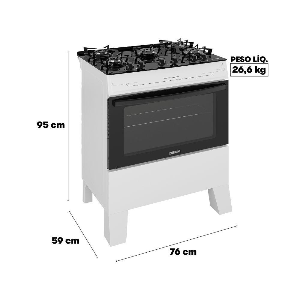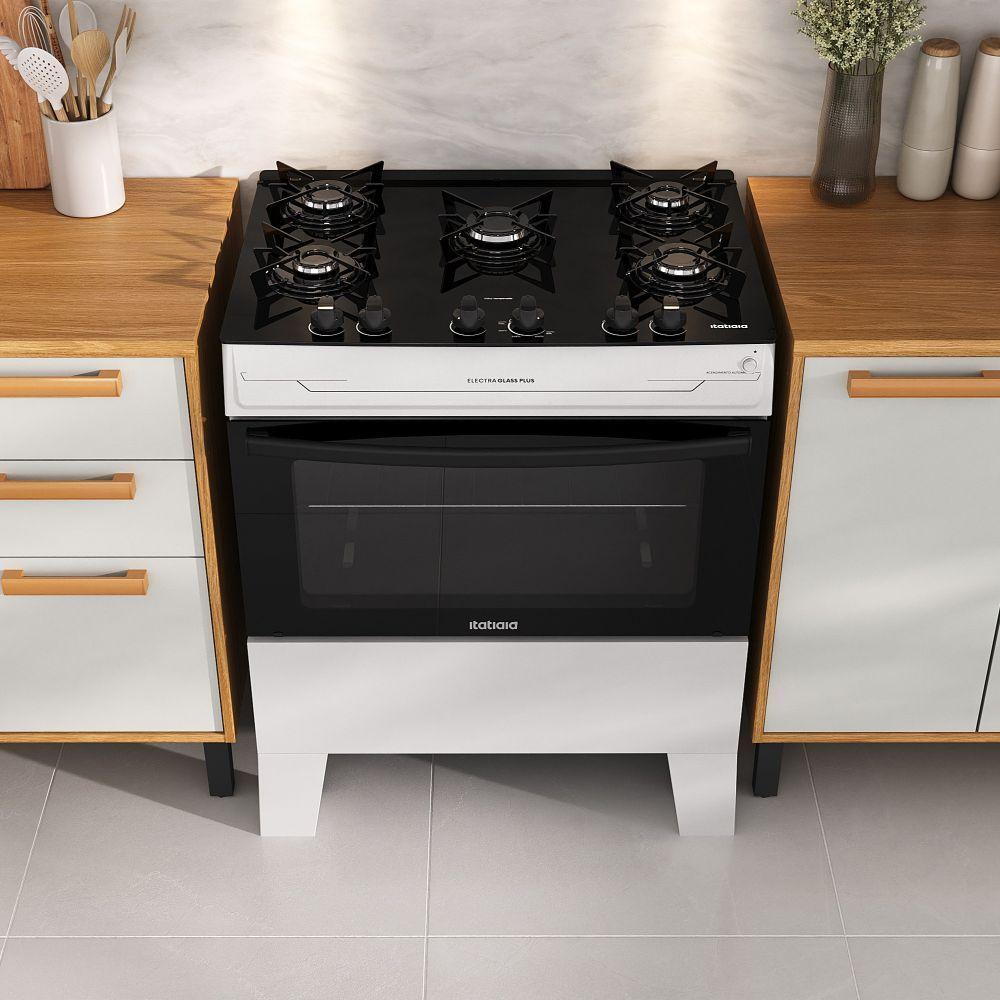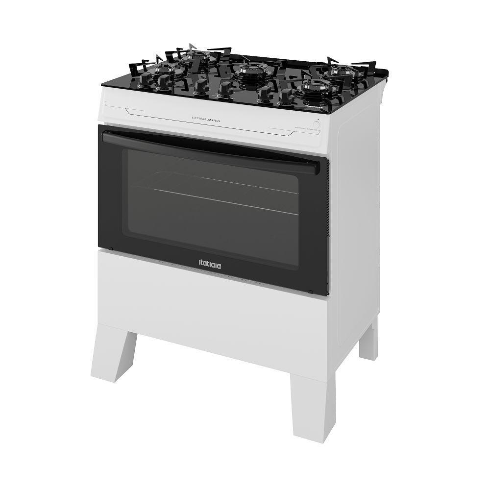 Fogão Itatiaia Electra Glass Pluss Piso 5 Bocas Branco Mesa De Vidro Bivolt (3700000487)
