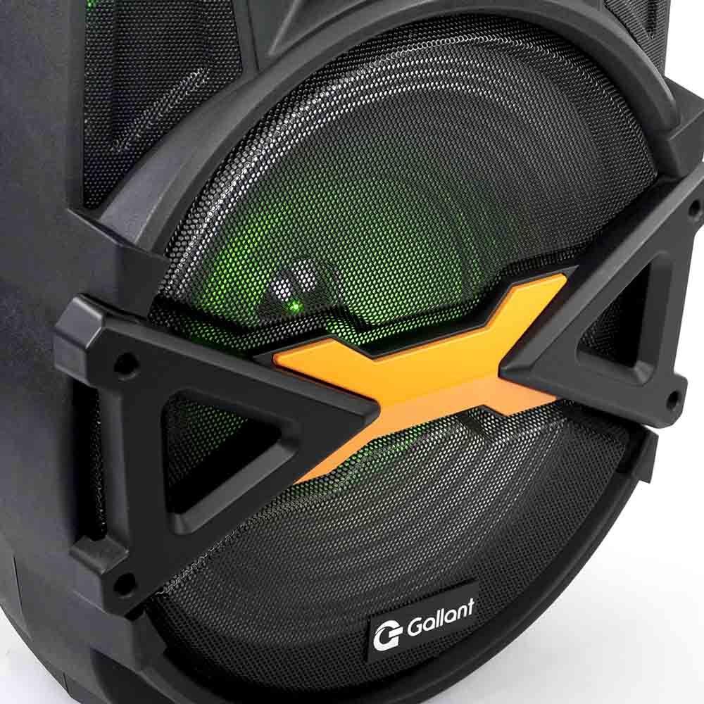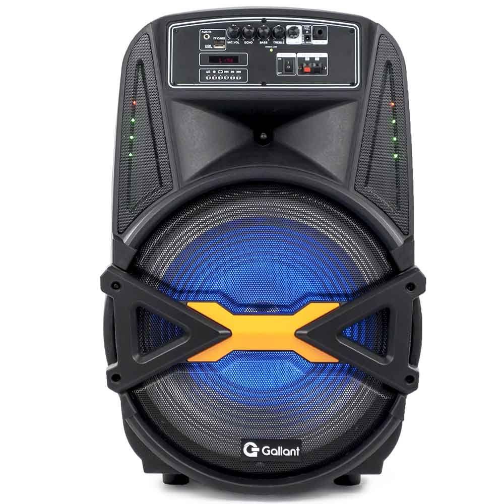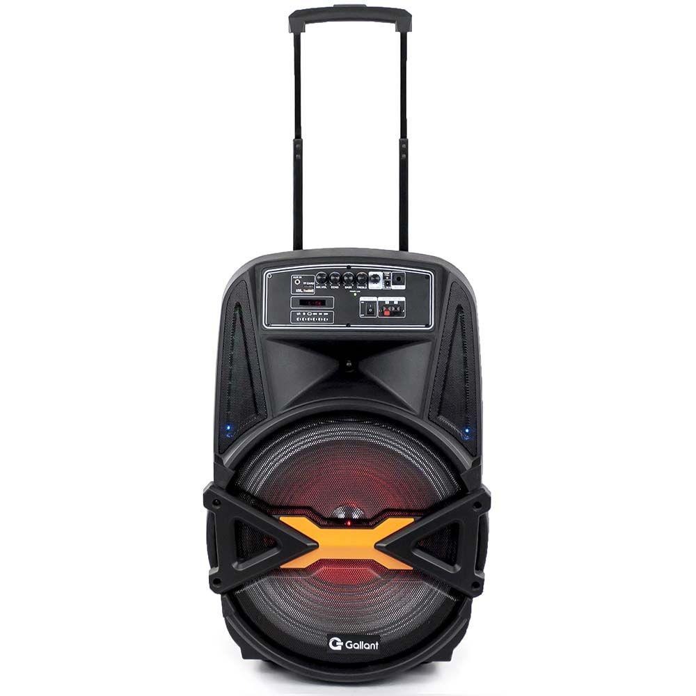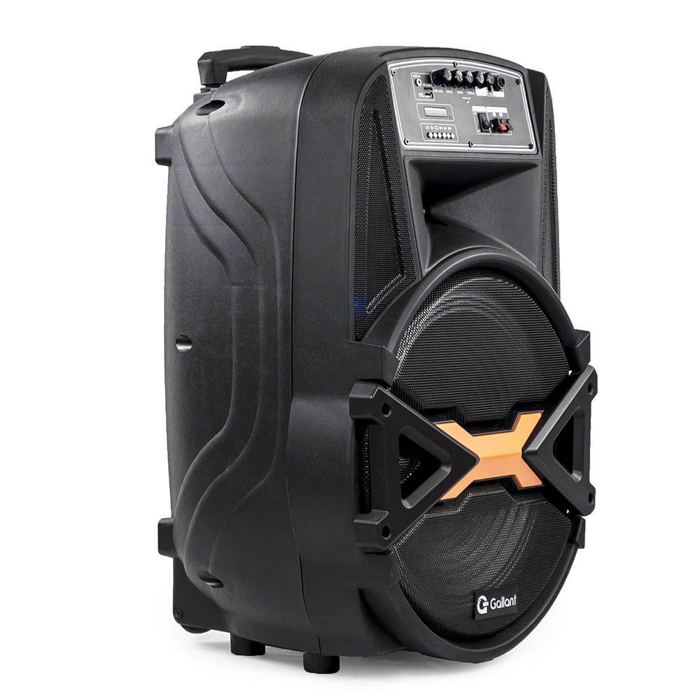Caixa de Som Portátil Gallant 500 com Bluetooth 4.2 BivoltJá imaginou poder levar a música para onde quiser? Agora você pode e com muito mais estilo! Conheça agora a caixa de som da Gallant e aproveite o que a música tem de melhor!São 2200mAH de bateria, ou seja, a música não vai parar! Muito mais tempo para aproveitar ao lado dos amigos e de quem você mais gosta. Através da conexão Bluetooth é possível escolher a playlist ideal para curtir com a galera, também é compatível com TF ou SD Card, além de possuir entrada USB e entrada auxiliar. As rodinhas facilitam o transporte da caixa de som e o design é pensado para combinar com tudo, conta com luzes de LED, dando outra cara para os seus eventos!Está esperando o que para adquirir a Caixa de Som da Gallant e dar um play na sua música favorita? São diversas possibilidades para que a música não tenha fim.Especificações Técnicas:- Marca: Gallant- Modelo: GCS15F01A_PTBIV- Tensão: Bivolt- Código Anatel:02921-19-12003- Bateria: 2200mAH - Potência de saída (RMS): 500W- Tempo de trabalho sem recarga: 3h- Tempo de recarga: 5h- AUX IN P2: Sim- Portátil (com rodas) : Sim- Controle Remoto: Sim- Reproduz MP3: Sim- Tipos de alto-falante: Woofer + Tweeter- Tipos de filtros do alto-falante: Ativo- Formato do alto-falante: Caixa- Quantidade de alto-falantes: 1- Lugares de colocação: De Piso- Com Bluetooth: Sim (4.2)- Com luzes LED: Sim- Com microfone: Sim- Com controle remoto: Sim- Com rádio: Sim (FM)- Com antena: Sim- Com rodas: Sim- Sem fio: Sim- Controle de Graves: Sim- Controle de Eco: Sim- Controle de Agudos: Sim- Autonomia da bateria: 3h- Puxador para transporte: Sim- Conectores de entrada: USB, Leitor SD, Auxiliar, Plug - Tweeter 3"": 1- AUDIO OUT: RCA NÃO- AUX IN: P2- Alimentação bateria externa: sim- Led indicador de bateria carregada: Sim- Itens que acompanham o produto: 1 Sound box, 1 cabo de energia, 1 Microfone, 1 manual, 1 Controle Remoto- Dimensões do Produto (LxAxP): 39 x 65,5 x 45 cm- Dimensões da Embalagem (LxAxP): 42 x 72 x 46 cm- Peso Líquido: 9.95kg- Garantia: 12 meses
