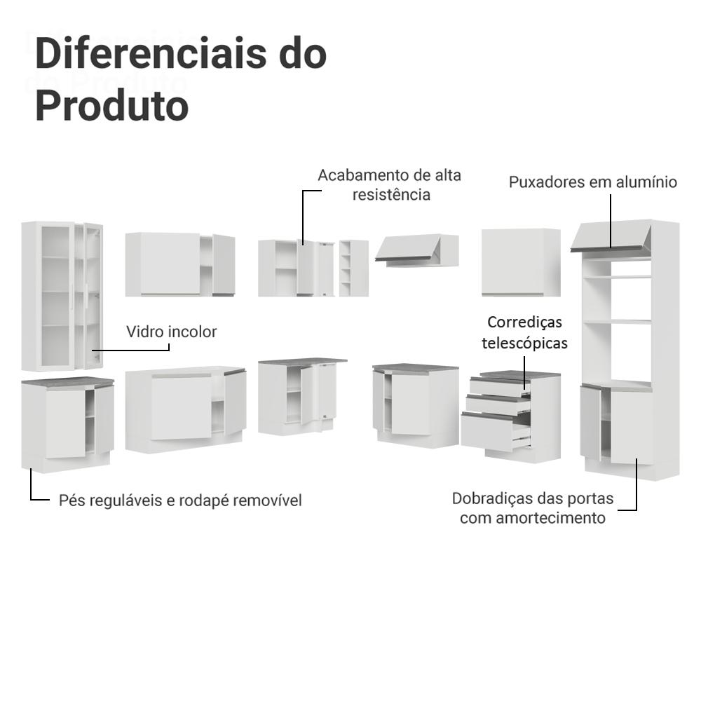 Armário de Cozinha Completa 549cm Branco Glamy Madesa 01