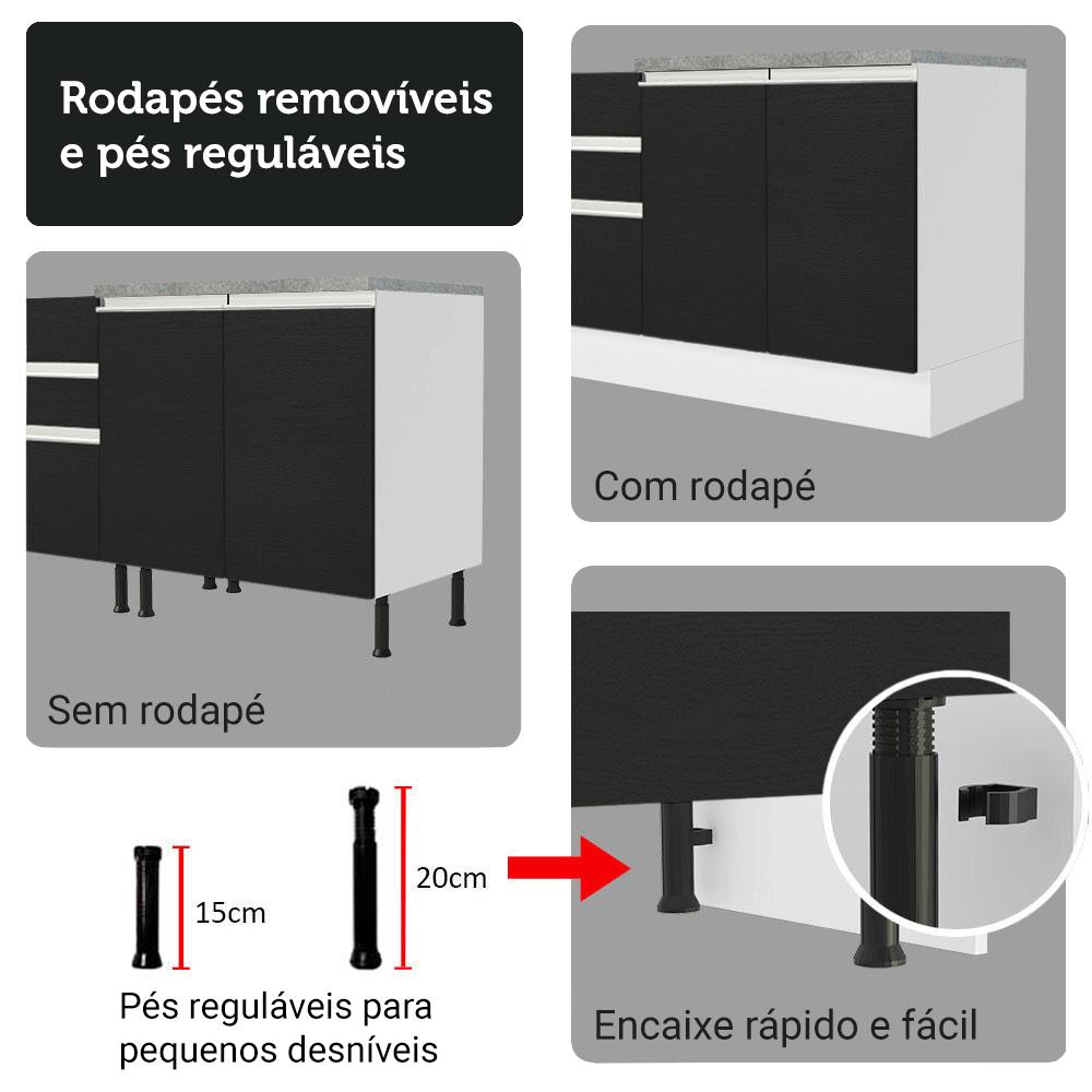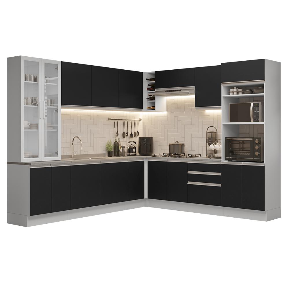 Armário de Cozinha Completa 549cm Branco/Preto Glamy Madesa 01