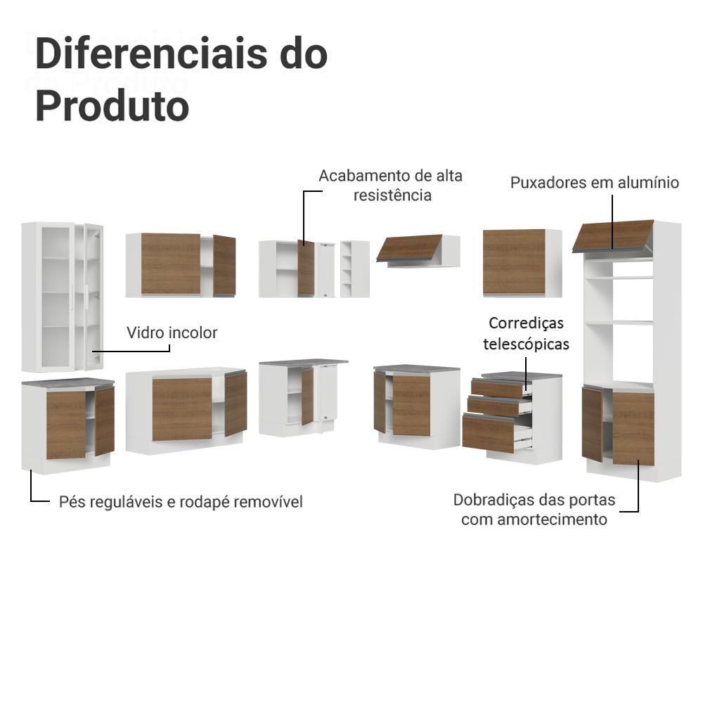 Armário de Cozinha Completa 549cm Branco/Rustic Glamy Madesa 01