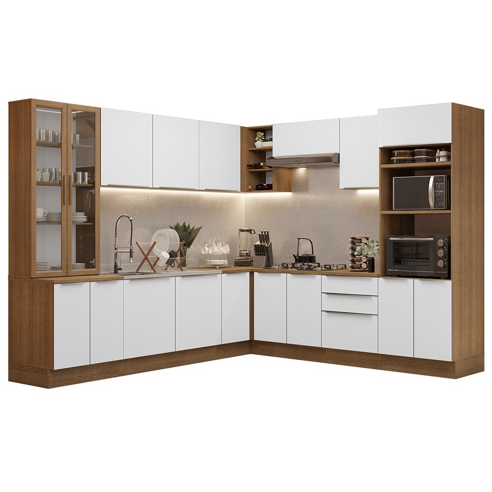 Armário de Cozinha Completa 566cm Rustic/Branco Veludo Lux Madesa 01