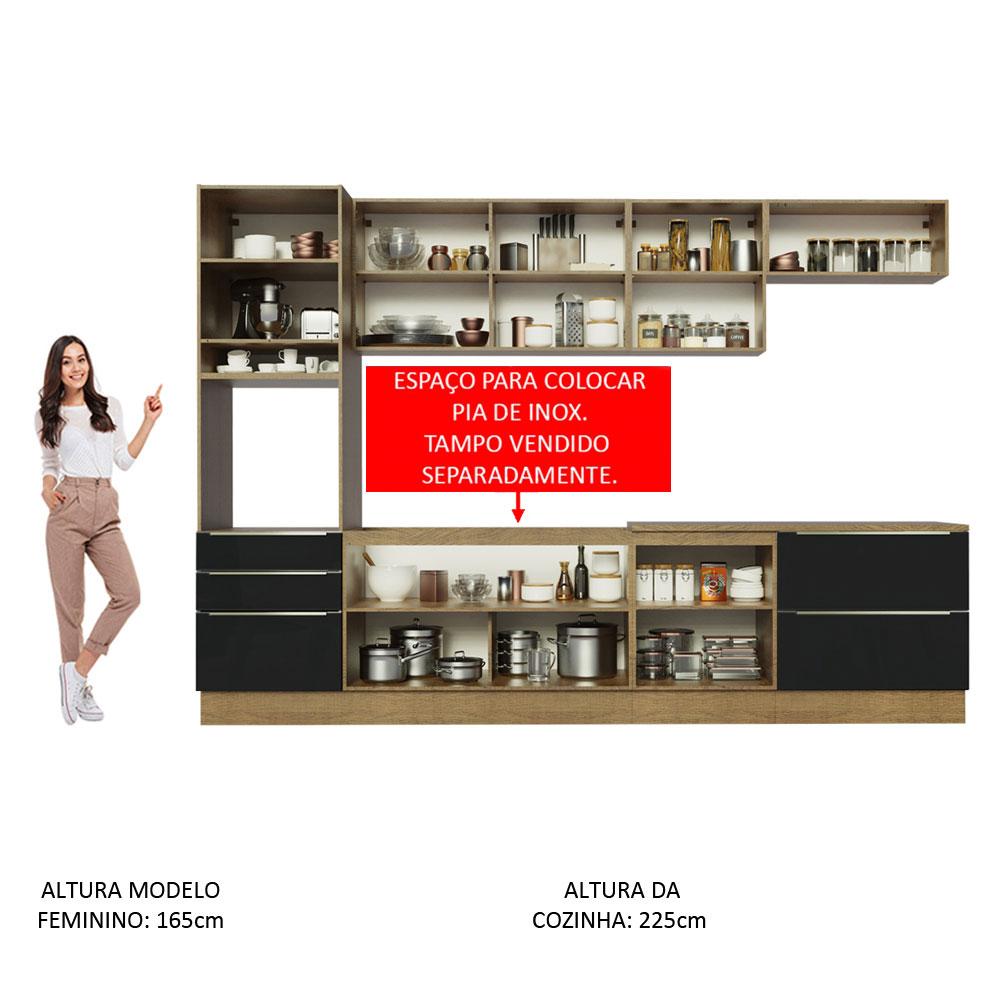 Cozinha Completa Madesa Lux 320004 com Armário e Balcão - Rustic/Preto