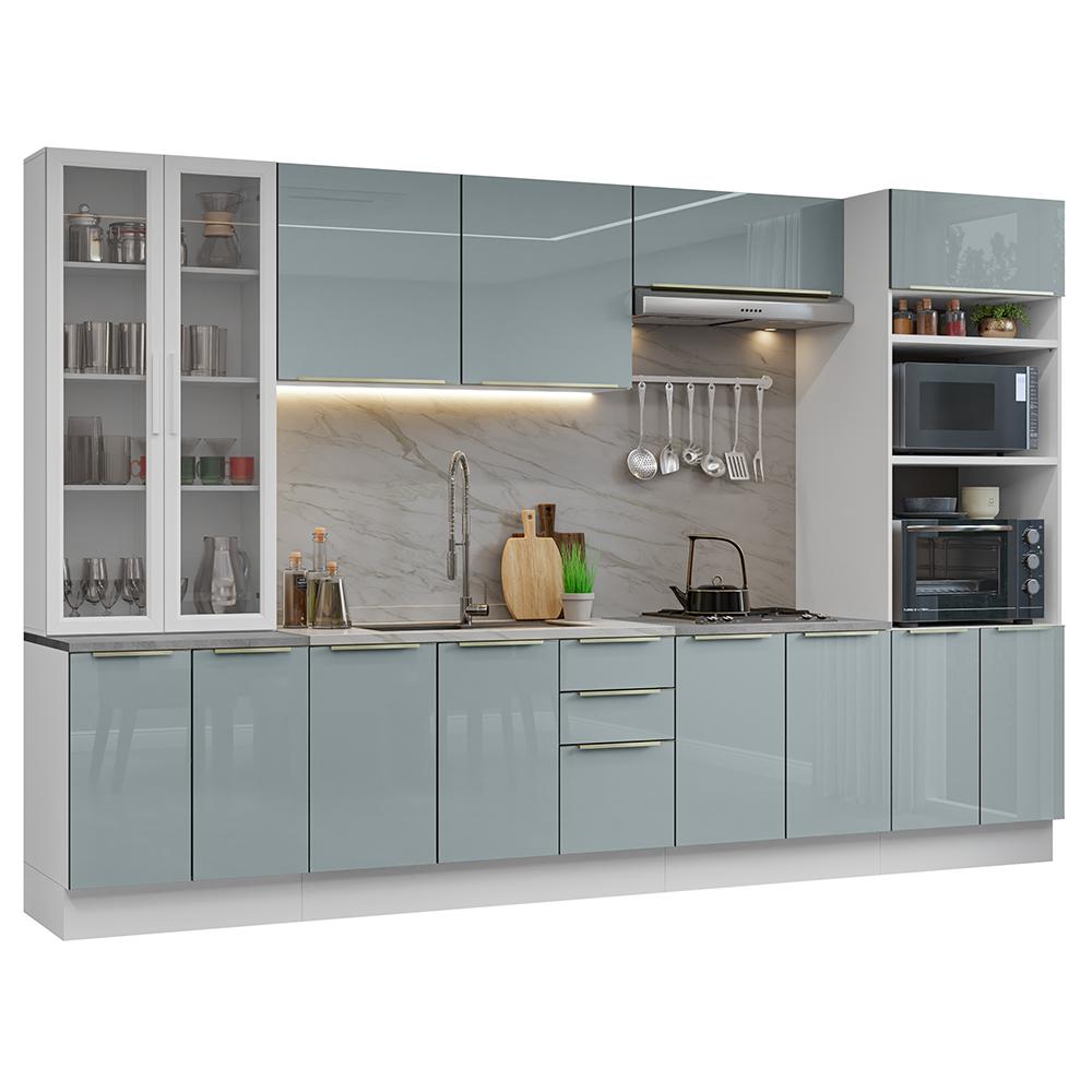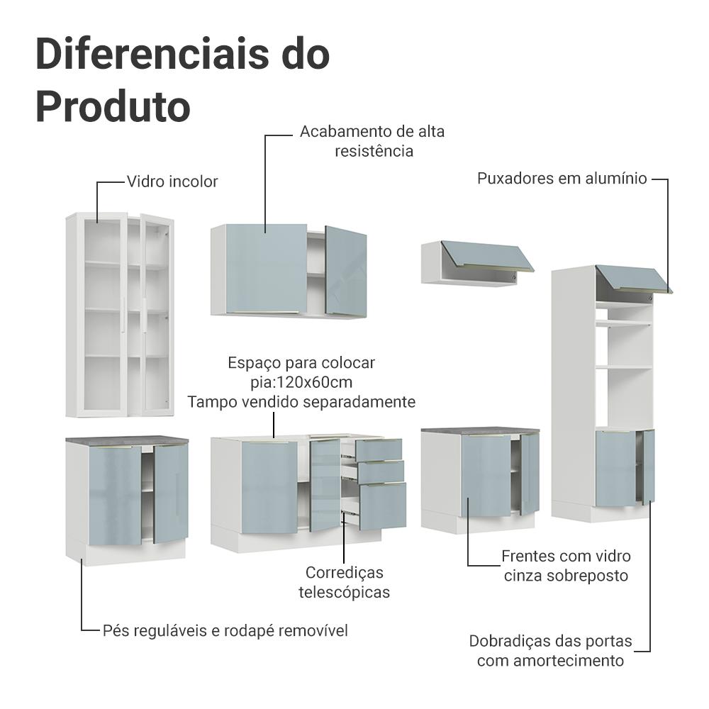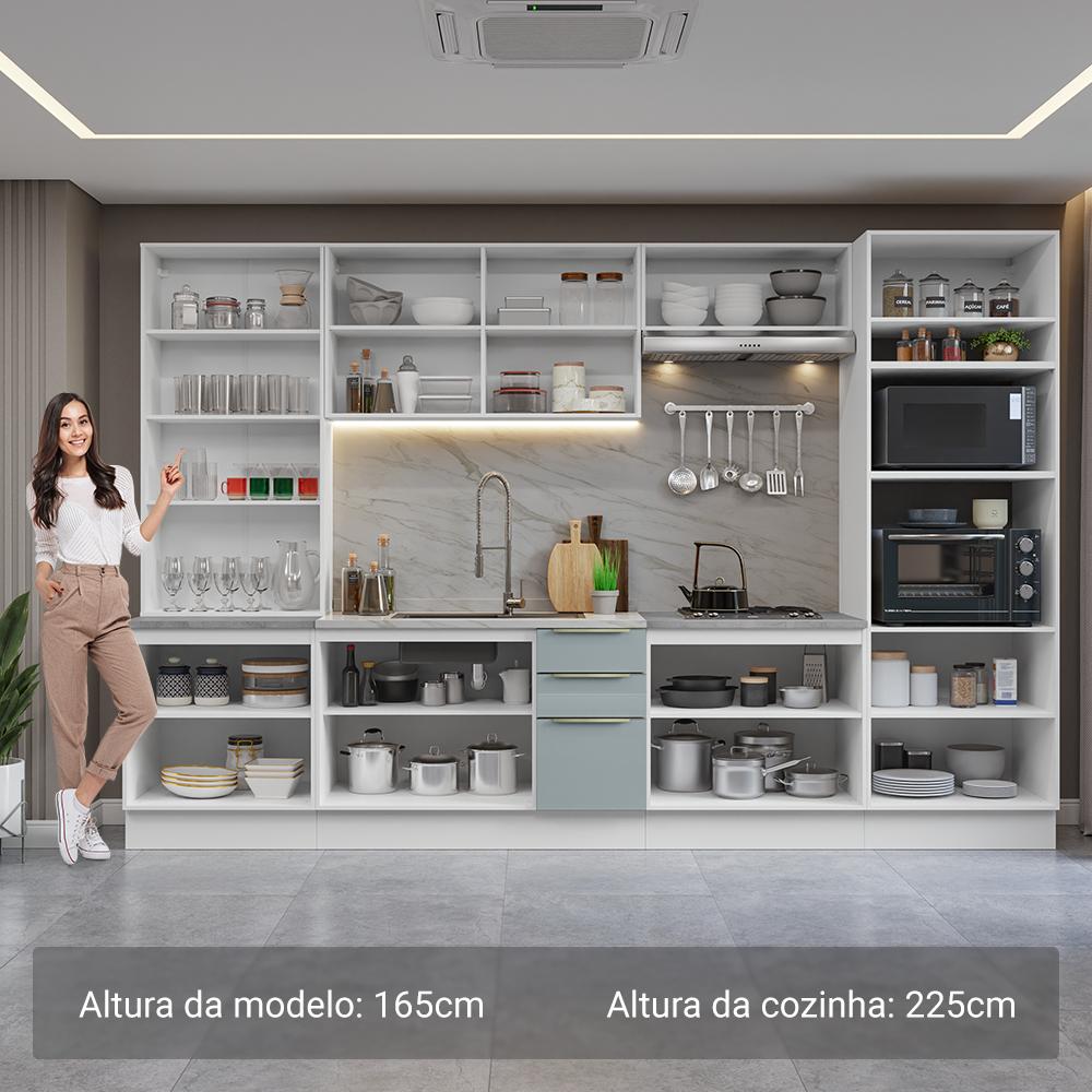 Armário de Cozinha Completa 340cm Branco/Cinza Lux Madesa 02