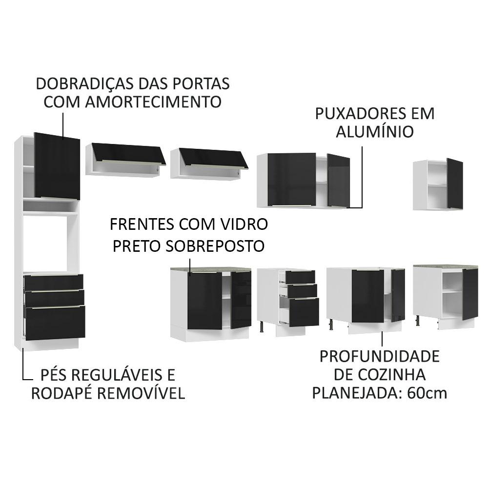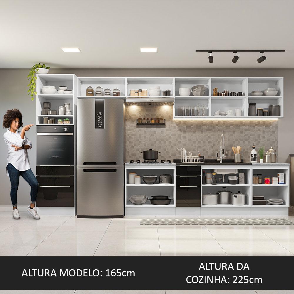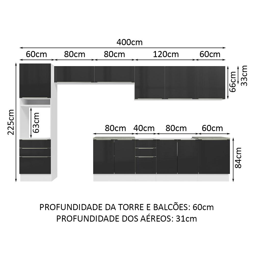 Armário de Cozinha Completa 400cm Branco/Preto Lux da Thauane Madesa