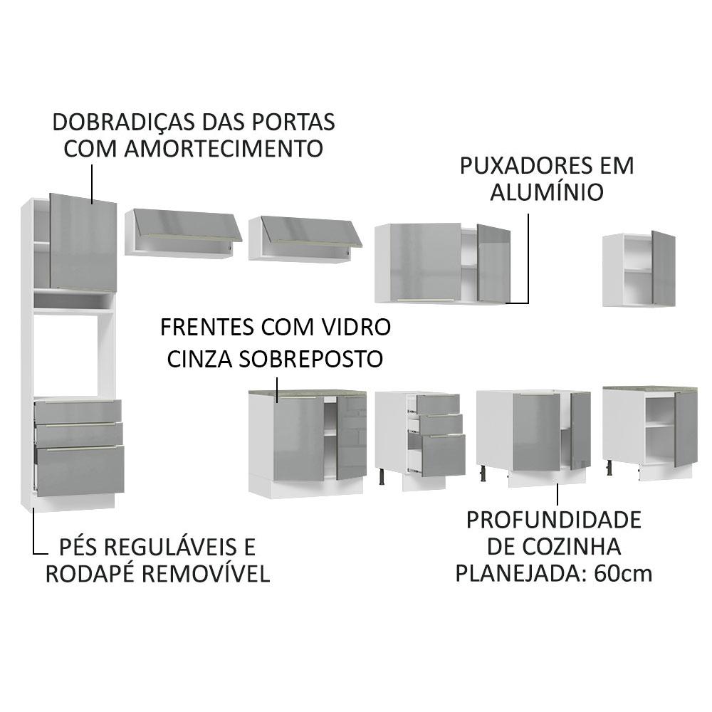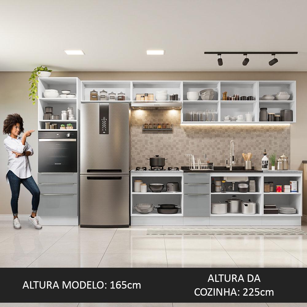 Armário de Cozinha Completa 400cm Branco/Cinza Lux da Thauane Madesa