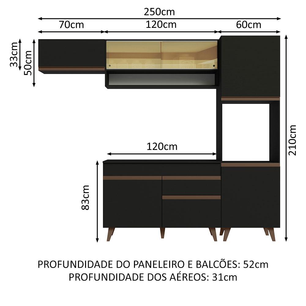 Cozinha Completa Madesa Reims 250004 com Armário e Balcão - Preto