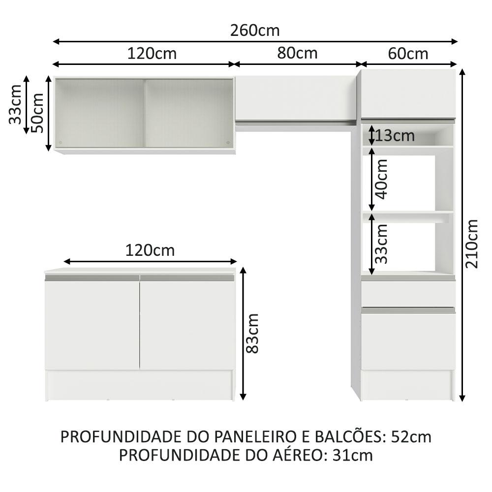 Armário de Cozinha Completa 260cm Branco Topazio Madesa 01