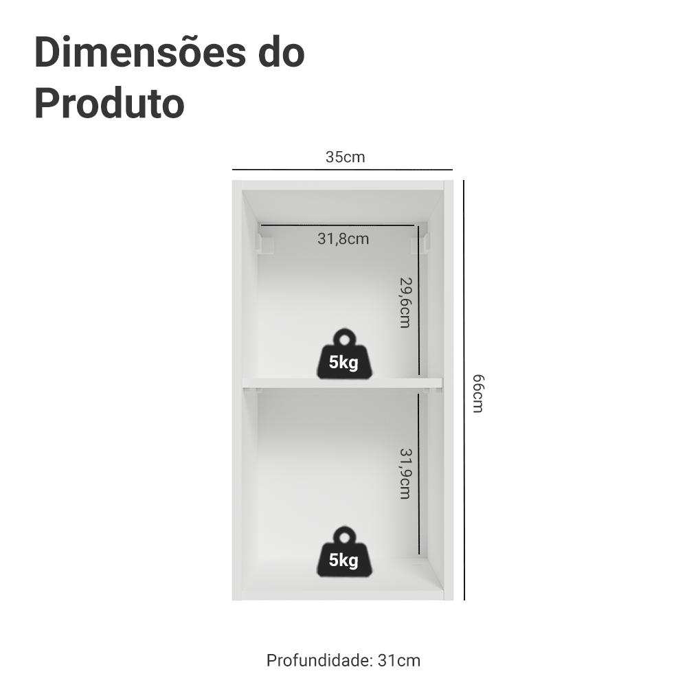 O Armário Aéreo para Quarto de 35 cm da Linha Neo foi desenvolvido para oferecer praticidade com design moderno.Com duas prateleiras internas, oferece organização inteligente para roupas, acessórios ou objetos do dia a dia. A porta conta com dobradiças com amortecimento, que garantem fechamento suave e silencioso, enquanto os puxadores slim em alumínio acrescentam modernidade e sofisticação ao design. O acabamento branco de alta resistência completa o conjunto, trazendo durabilidade e fácil combinação com diferentes estilos de decoração.A Linha Neo da Madesa foi desenvolvida para oferecer soluções planejadas que unem praticidade e sofisticação em cada detalhe. Versátil e fácil de combinar, permite criar composições com outros módulos da linha, resultando em um ambiente moderno e totalmente do seu jeito.Medidas totais:- 66 cm de altura- 35 cm de largura- 31 cm de profundidadeO que você recebe:- Um Armário Aéreo de 35 cm com uma portaCódigo do produto: MDDR01002209É importante saber:- Material: MDP- Imagens meramente ilustrativas, a decoração não acompanha o produto- A Madesa não disponibiliza serviço de montagem- O produto segue com manual de instalação e todas as ferragens necessárias para sua montagemA Madesa se dedica à sustentabilidade com várias iniciativas: temos uma usina própria que gera energia para uma das fábricas. Priorizamos fornecedores responsáveis com o meio ambiente. Todo o plástico utilizado na produção é reciclado, e as sobras também são reaproveitadas. Investimos no desenvolvimento de nossos colaboradores e em ações que beneficiem a comunidade.