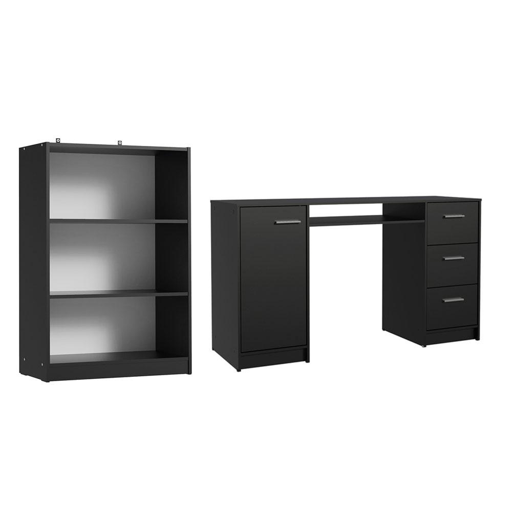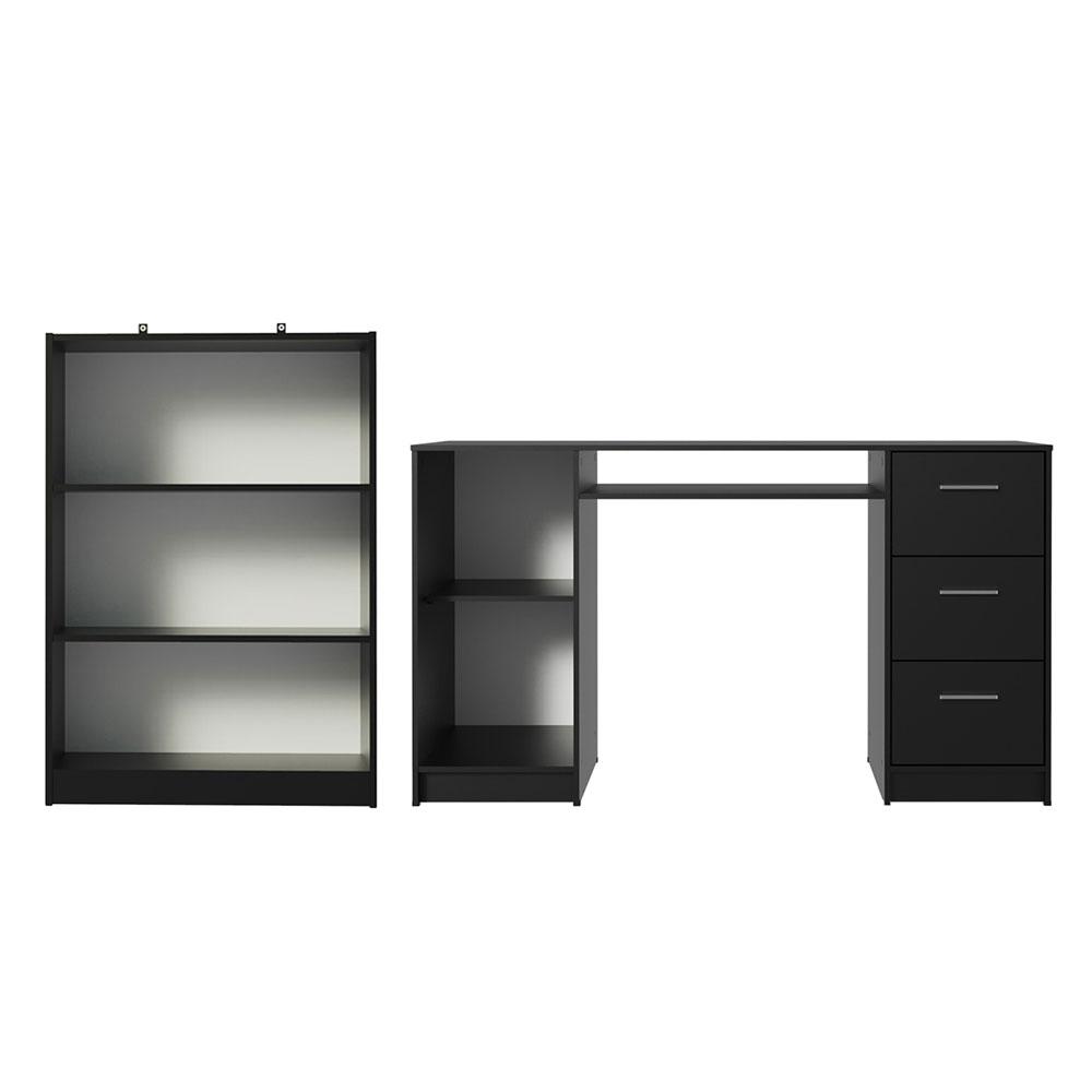 Escrivaninha Madesa Alaska + Estante Livreiro 6907 - Preto