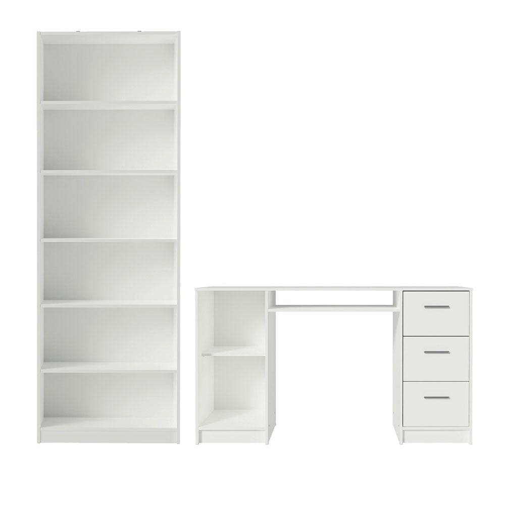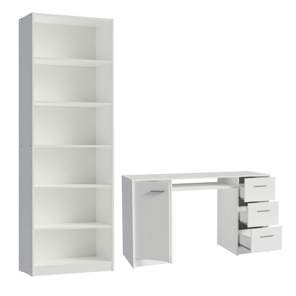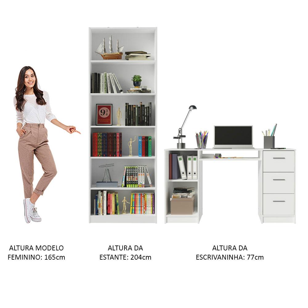 Escrivaninha Madesa Alaska + Estante Livreiro 6908 - Branco
