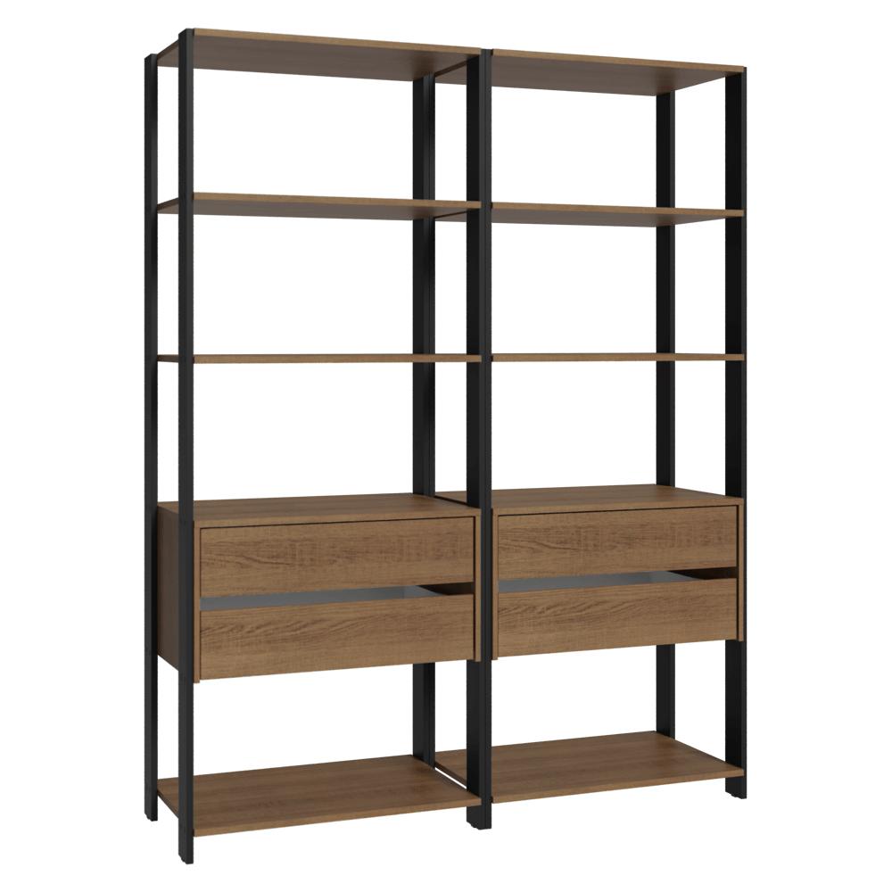 Estante Armário Multiuso para Livros 4 Gavetas 8 prateleiras 140cm Rustic/Preto Madesa