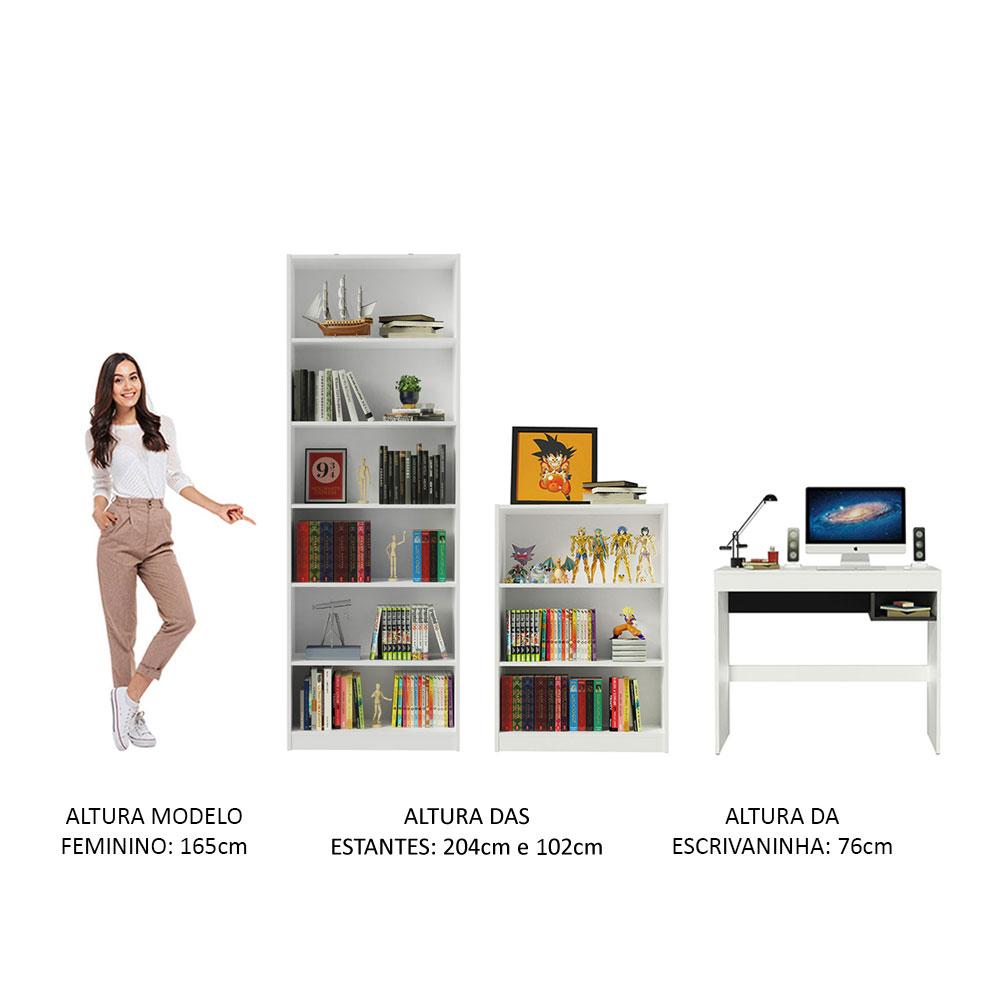 Escrivaninha Madesa Rubi + Estante 6908 + Estante 6907 - Branco/Preto