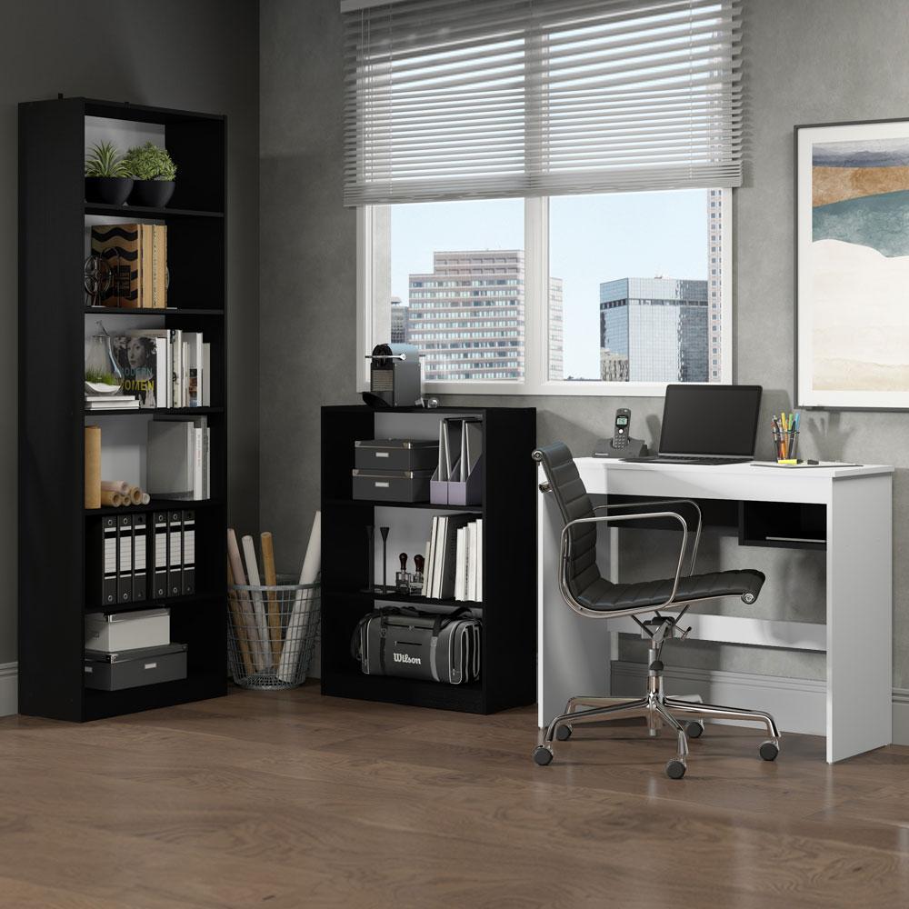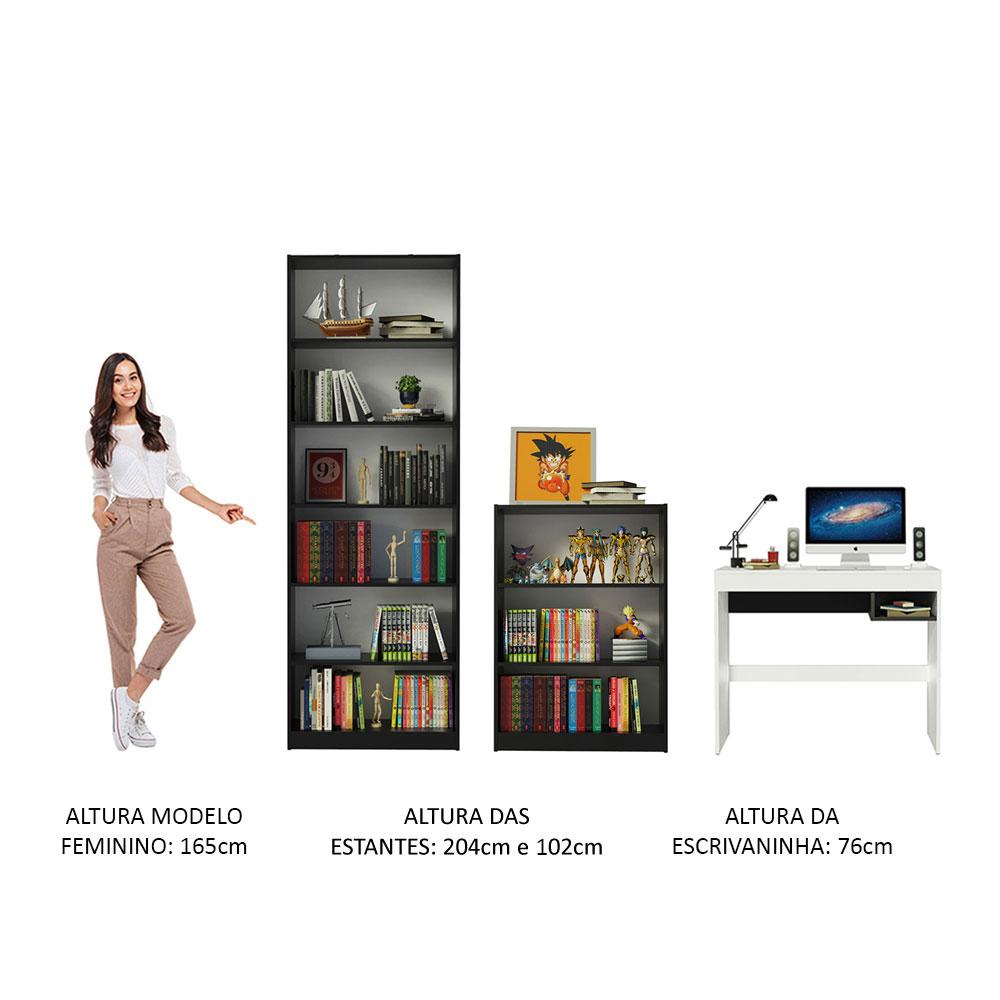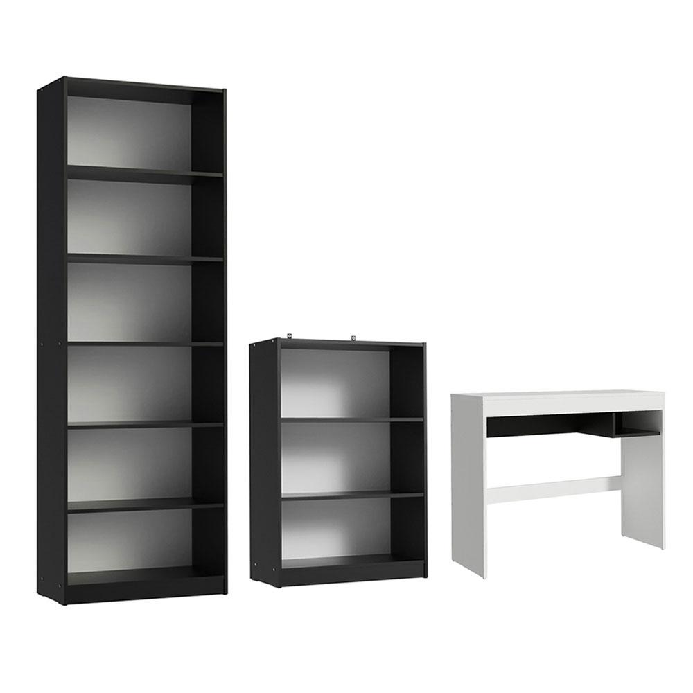 Escrivaninha Madesa Rubi + Estante 6908 + Estante 6907 - Preto/Branco