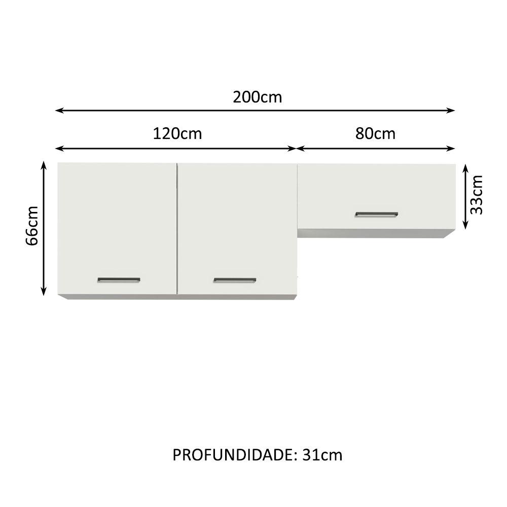 Este Armário Aéreo multiuso é ideal para melhorar a organização dos objetos e utensílios da sua garagem.A distribuição interna é ótima, oferecendo amplo espaço de armazenamento. As portas do aéreo maior possuem amortecedores para o fechamento suave e a porta basculante conta com pistão a gás, que a mantém aberta. Os puxadores possuem alça em alumínio.O acabamento branco é realizado em Pintura Poliéster com 7 camadas, uma opção ecologicamente correta que preserva a beleza do móvel por muito mais tempo.Medidas totais:- 66 cm de altura- 200 cm de largura- 31 cm de profundidadeItens inclusos:- Um (1) Armário Aéreo de 120 cm de largura com duas (2) portas- Um (1) Armário Aéreo de 80 cm de largura com uma (1) porta basculanteCódigo do produto: MDGA02000109Obs.: - Por segurança, é obrigatório fixar o móvel na parede- As imagens são meramente ilustrativas- A Madesa não oferece serviço de montagem- Acompanha ferragens e manual com todos os passos para a montagem do produtoA Madesa se dedica à sustentabilidade com várias iniciativas: temos uma usina própria para gerar energia que abastece uma de nossas fábricas. Selecionamos nossos fornecedores, priorizando aqueles que possuem um compromisso com a sustentabilidade e proteção do meio ambiente. Todo o plástico utilizado no setor produtivo é proveniente de reciclagem e as suas sobras são encaminhadas ao fornecedor que os recicla. Também investimos no desenvolvimento contínuo de nossos colaboradores e em ações educacionais que beneficiem a comunidade.