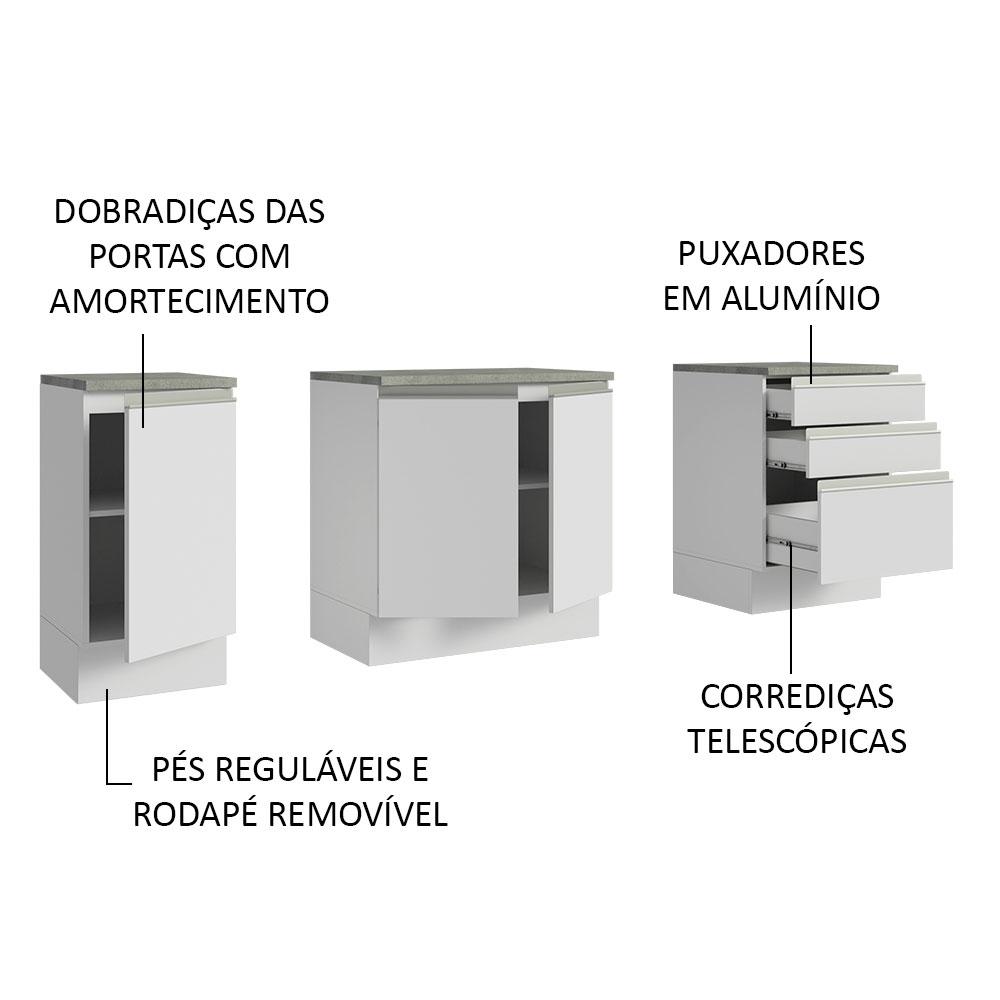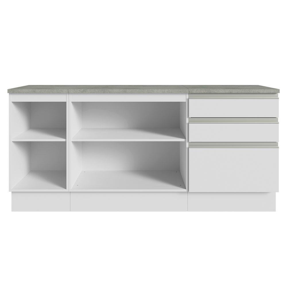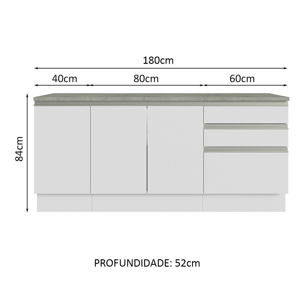 Para renovar seu banheiro com muita modernidade e funcionalidade, a escolha perfeita é este Armário Gabinete de 180 cm da Madesa. O conjunto é composto por três balcões avulsos, proporcionando três portas com fechamento suave e três gavetas com corrediças de abertura total. Essa divisão permite fácil acesso e muito espaço para a organização dos objetos.Você poderá acomodar toalhas, produtos de limpeza e todos os seus itens de higiene pessoal. Sem falar no design elegante, que deixará seu banheiro muito mais charmoso.Os balcões também contam com puxadores em alumínio e pés reguláveis em PVC, com rodapé removível em MDP, facilitando a limpeza.Para completar, o acabamento branco é feito com Pintura Poliéster ecológica, com 7 camadas de proteção. Isso garante durabilidade e resistência à água, mantendo o gabinete impecável por muito tempo.Medidas totais: - 84 cm de altura- 180 cm de largura- 52 cm de profundidadeItens inclusos: - Um (1) Balcão de 40 cm com uma (1) porta e tampo- Um (1) Balcão de 80 cm com duas (2) portas e tampo- Um (1) Balcão de 60 cm com três (3) gavetas e tampoCódigo do produto: MDMU03000149Obs.: - As imagens são meramente ilustrativas- Não acompanha tampo, pia de pedra e demais objetos decorativos- A Madesa não disponibiliza serviço de montagem- O produto segue com manual e todas as ferragens necessárias para a instalação1 – O produto vem montado? Se não, vocês realizam a montagem?R.: A Madesa não disponibiliza serviço de montagem. Todos os produtos seguem com manual de instalação e as ferragens necessárias. Alguns produtos possuem vídeo explicando o passo a passo da montagem.2 – Vocês possuem loja física? Posso retirar meu produto em mãos?R.: Não possuímos loja física, apenas loja virtual. Confira as opções de envio ao colocar o seu CEP.3 – Qual é o valor do envio? Posso pagar separadamente?R.: O valor do envio é calculado com base no peso e volume do produto, e no CEP de destino. Você pode calcular o valor e prazo de entrega no simulador.A Madesa se dedica à sustentabilidade com várias iniciativas: temos uma usina própria para gerar energia que abastece uma de nossas fábricas. Selecionamos nossos fornecedores, priorizando aqueles que possuem um compromisso com a sustentabilidade e proteção do meio ambiente. Todo o plástico utilizado no setor produtivo é proveniente de reciclagem e as suas sobras são encaminhadas ao fornecedor que os recicla. Também investimos no desenvolvimento contínuo de nossos colaboradores e em ações educacionais que beneficiem a comunidade.