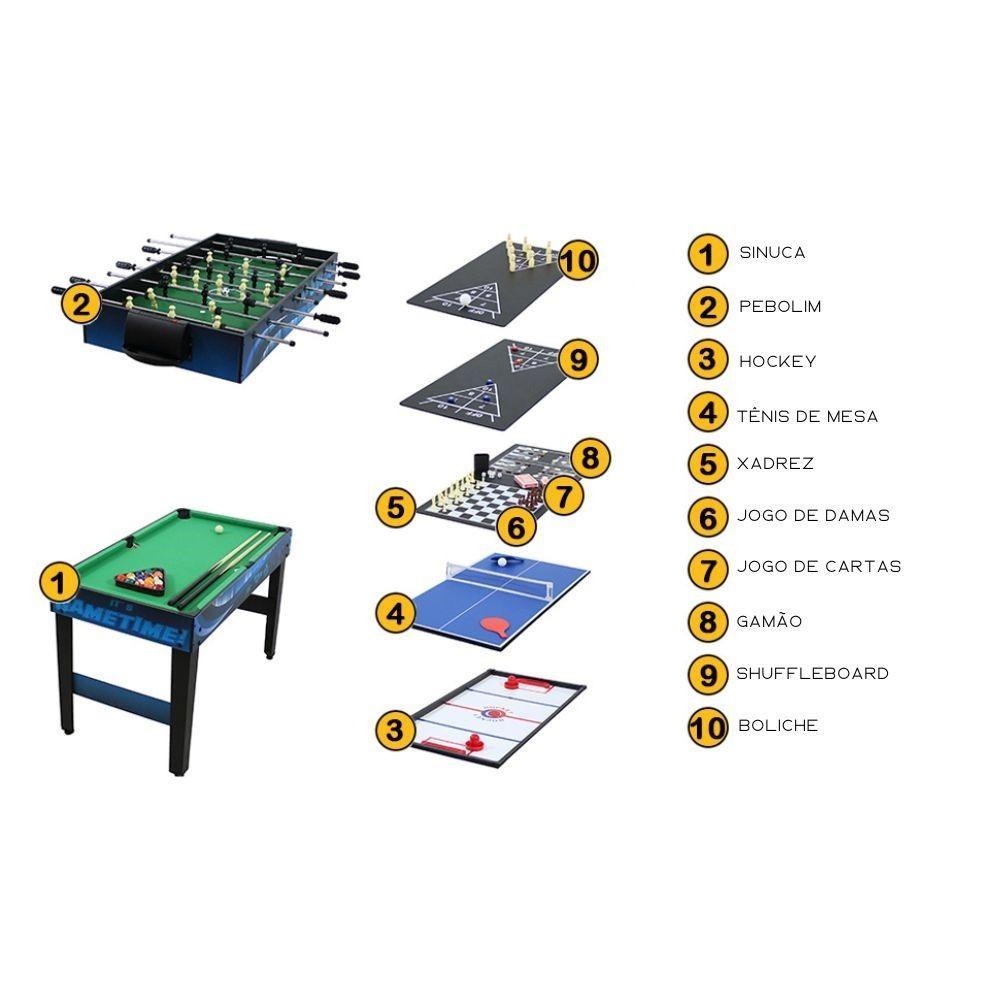 Mesa Multijogos 10 Em 1 Mdf Com Pebolim, Bilhar, Hockey E Mais Compacta E Resistente