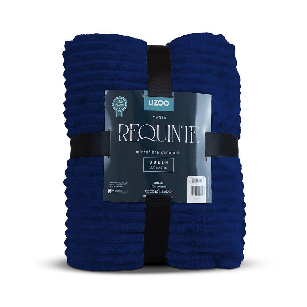 Manta Microfibra Requinte Queen Canelada 220x240cm - Uzoo Manta Microfibra Flannel Requinte Queen Canelada 220x240cm Azul