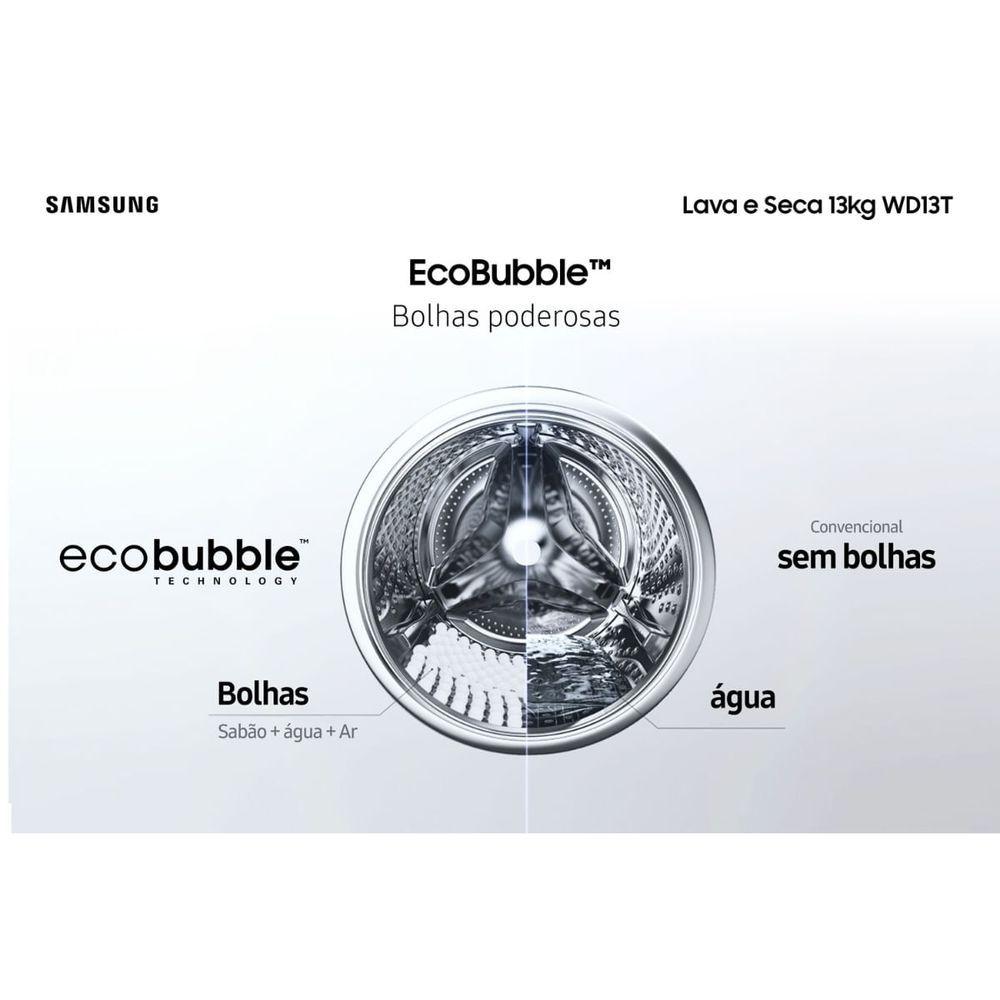 Lavadora e Secadora Samsung Smart 12Kg Inox 110V WD13T504DBN/AZ Lavadora e Secadora Samsung Smart 12Kg Inox 110V WD13T504DBN/AZ!Descubra o futuro da lavanderia com a Lavadora e Secadora Samsung Smart 12Kg InoxProjetada para transformar sua rotina de cuidados com as roupas, a Lavadora e Secadora Samsung Smart 12Kg combina eficiência, sofisticação e inovação. Com um design moderno em aço inoxidável, este equipamento não só eleva a estética do ambiente, mas também garante durabilidade e desempenho excepcionais.Características do Produto:Tecnologia EcoBubble: A exclusiva tecnologia EcoBubble da Samsung transforma o detergente em bolhas antes de entrar em contato com as roupas, garantindo uma limpeza profunda mesmo em temperaturas mais baixas. Isso resulta em economia de energia e proteção dos tecidos.Função Smart Control: Com a conectividade Wi-Fi integrada, a função Smart Control permite que você controle e monitore a lavadora e secadora remotamente através do seu smartphone. Acompanhe o ciclo, receba alertas e ajuste configurações sem precisar estar próximo ao aparelho.Secagem por Condensação: A tecnologia de secagem por condensação é perfeita para preservar a qualidade das roupas. Ela utiliza um sistema fechado que evita o desgaste excessivo dos tecidos e reduz a necessidade de manutenção constante do aparelho.Por que comprar a Lavadora e Secadora Samsung Smart 12Kg Inox?A Lavadora e Secadora Samsung Smart 12Kg é a escolha ideal para quem valoriza tempo, eficiência e cuidado com as roupas. A combinação de tecnologias avançadas e um design sofisticado faz deste aparelho um verdadeiro aliado na rotina, garantindo roupas sempre impecáveis com o mínimo esforço. Além disso, a durabilidade do aço inoxidável e a inovação da Samsung asseguram um investimento seguro e de longo prazo. Faça parte de uma nova era na lavanderia e experimente a excelência que só a Samsung pode oferecer.Transforme sua rotina com a Lavadora e Secadora Samsung Smart – o equilíbrio perfeito entre inovação e elegância. Adquira já a sua!Especificações Técnicas:Marca: SamsungModelo: WD13T504DBN/AZDimensões (LxAxP): 60 x 85 x 65 cmPeso: 80 kgMaterial: Aço inoxidávelCor: InoxCapacidade de Lavagem: 13 KgCapacidade de Secagem: 7 KgPotência: 1100WVoltagem: 110VGarantia: 12 meses pelo fabricanteCertificado: Não se aplicaFunções: Lavagem e secagem automática, Smart Control, Vapor, EcoBubble, Secagem por condensação