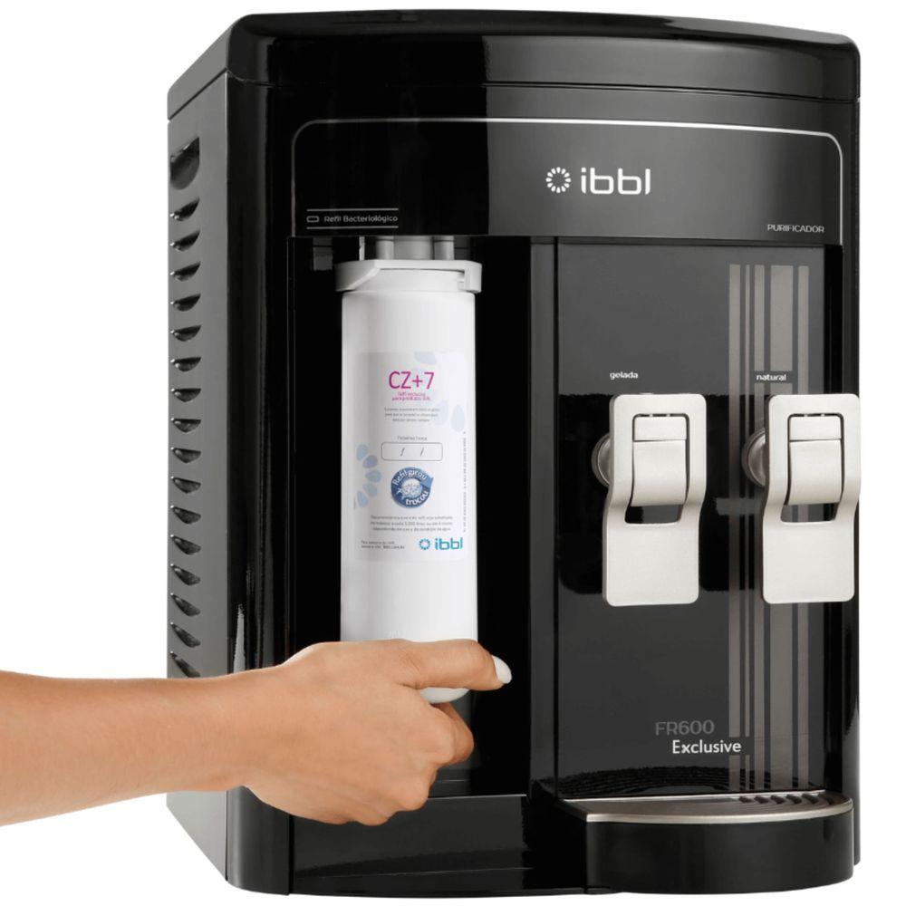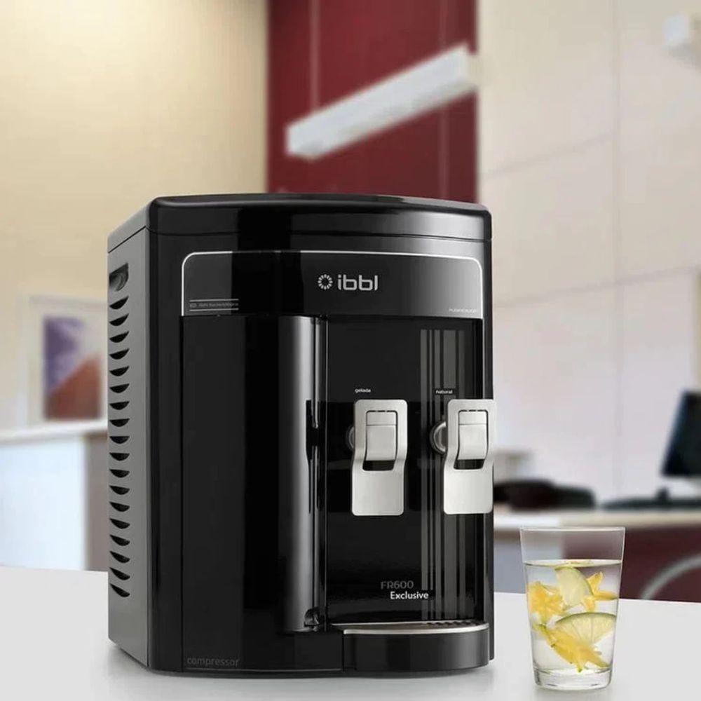 Purificador De Água IBBL FR600 Exclusive Com Compressor Preto 53041001 110VPurificador de Água IBBL FR600 Exclusive com Compressor Preto 110V – 53041001O Purificador de Água IBBL FR600 Exclusive 110V oferece filtragem avançada associada à refrigeração por compressor, garantindo água pura, fresca e com excelente rendimento. Com vazão de 1,1 L/h de água gelada, é ideal para residências e pequenos escritórios que desejam praticidade e qualidade no consumo diário.Por que escolher a IBBL?Marca referência em purificadores de água.Sistemas de filtragem que reduzem impurezas, cloro, odores, sabores e bactérias.Equipamentos duráveis, eficientes e com manutenção simples.CaracterísticasFiltragem completa: Sistema com múltiplas etapas que reduz impurezas e melhora sabor e odor da água.Refrigeração eficiente: Compressor de alto desempenho que mantém a água sempre gelada.Design versátil: Pode ser instalado sobre a bancada ou fixado na parede, adaptando-se a diferentes espaços.Indicador de troca de refil: Facilita a manutenção e assegura qualidade contínua da filtragem.Economia e durabilidade: Baixo consumo de energia e materiais de alta resistência.Especificações do produtoMarca: IBBLModelo: 53041001Cor: PretoClassificação energética: ATipo de instalação: Bancada (opção para fixação na parede)Dimensões sem embalagem (L x A x P): 31,2 x 41 x 35,7 cmPeso sem embalagem: 10,6 kgGarantia: 12 mesesInstalaçãoEscolher com ponto de água e energia elétrica (110V).Manter espaço livre para ventilação nas laterais e parte traseira.Utilizar tomada com aterramento e evitar extensões.Instalação pode ser realizada sobre bancada ou parede conforme necessidade.Garantia12 meses contra de fabricação.Não cobre desgaste natural, instalação inadequada ou uso indevido.