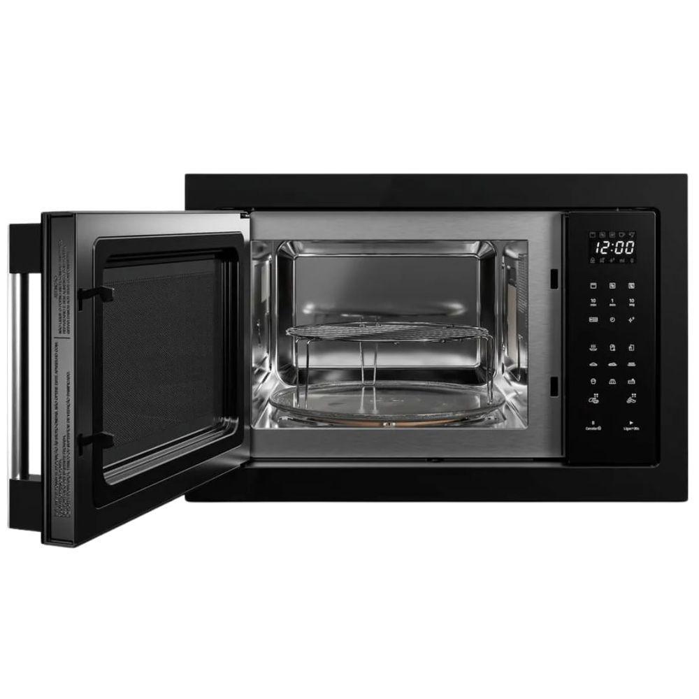 Micro-ondas Panasonic De Embutir 30 Litros Preto NN-GB68QBRUK 220VMicro-ondas Panasonic de Embutir 30 Litros Preto – Modelo NN-GB68QBRUK – 220VDescrição GeralMicro-ondas de embutir com design moderno e elegante na cor preta, ideal para cozinhas planejadas. Conta com painel digital intuitivo e funções automáticas que proporcionam praticidade no preparo diário de alimentos. Sua potência de 900W garante aquecimento rápido e uniforme, com revestimento interno de fácil limpeza.Diferenciais da MarcaA Panasonic é referência mundial em inovação, qualidade e eficiência energética, oferecendo produtos projetados para garantir durabilidade, praticidade e desempenho superior.Características do ProdutoCor: PretoTipo de produto: Micro-ondas de embutirCapacidade: 30 litrosPotência: 900W (220V)Classificação Energética: APainel digital com funções automáticasFunção descongelarAquecimento rápidoControle de potência ajustávelSistema de ventilação eficienteRevestimento interno fácil de limparAcabamento com design integrado e sofisticadoEspecificações TécnicasTipo de Alimentação: ElétricoModelo: NN-GB68QBRUKMarca: PanasonicPeso sem embalagem: 17,7 kgTipo de montagem: EmbutirDimensõesDimensões sem embalagem (L x A x P):95,5 cm x 38,8 cm x 42,75 cmInstalação e RequisitosInstalação em nicho com ventilação adequadaTomada exclusiva para o equipamentoTensão: 220VInstalação indicada a profissionais especializadosSeguir manual do fabricante para medidas de nicho e fluxo de ar adequadoGarantia e AssistênciaGarantia do fornecedor: 12 meses contra de fabricaçãoAssistência técnica: Rede autorizada Panasonic em todo o