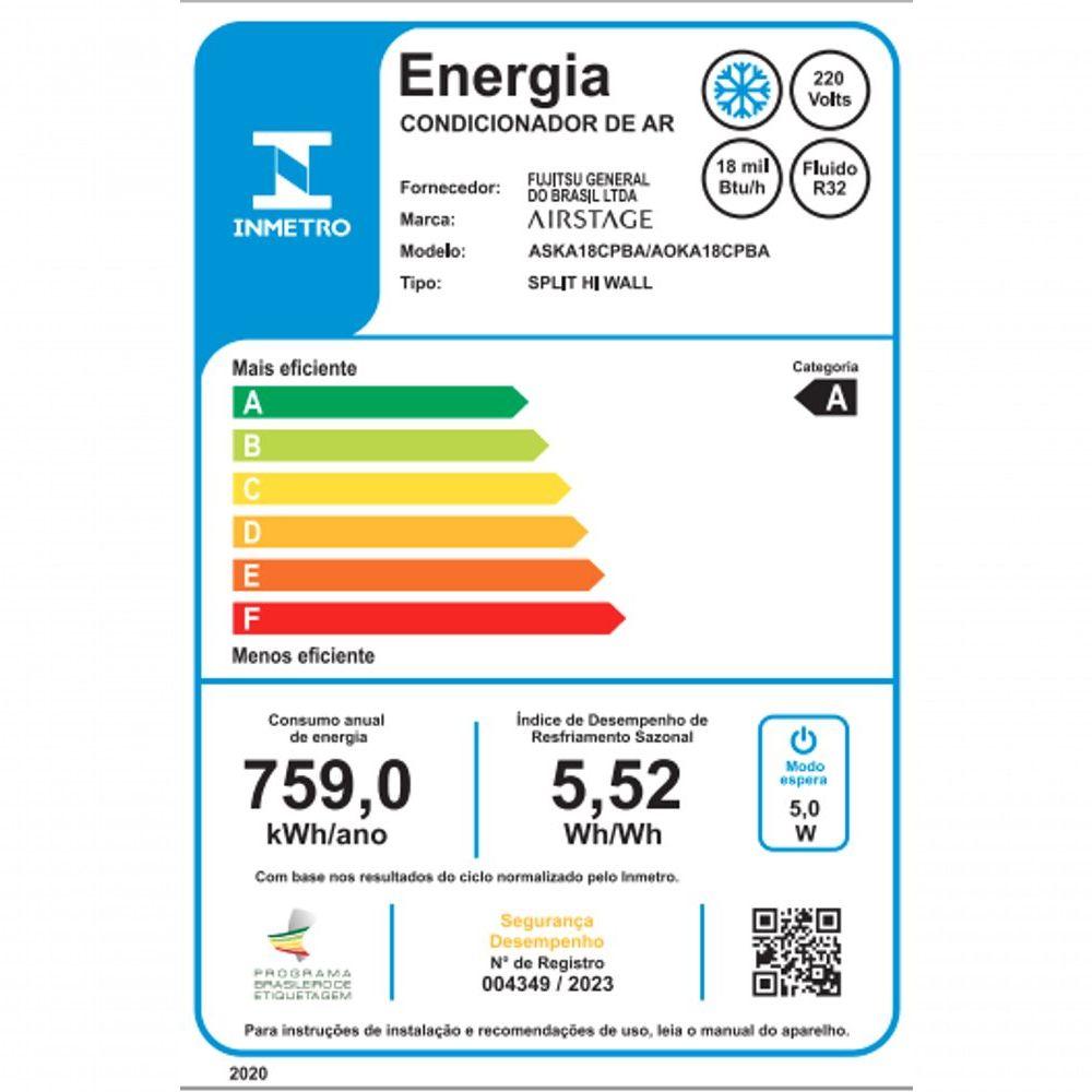 Ar Condicionado Split Hi Wall Fujitsu Inverter Airstage Premium 18.000 Btus Frio 220v R-32<br>Ar Condicionado Split Hi Wall Fujitsu Inverter Airstage Premium 18.000 Btus Frio 220v R-32- Eficiência energética Superior- Operação silenciosa- Alta economia de energia- Função Economy- Operação Powerful- Controle de sensor de presença- Filtro exclusivo de Íon- Filtro exclusivo de Catequina de Maça- Controle remoto com display iluminado para operação noturna- Procel Ouro nos modelos High Wall da linha Premium.<br>Garantia - 12 Meses<br>Voltagem - 220v<br>Serpentina - Cobre<br>Condensador - Horizontal<br>Compressor - Inverter<br>Classificação INMETRO - A<br>Tipo - Hi Wall<br>Controle de temperatura - sim<br>Garantia do fornecedor - sim<br>Cor da Evaporadora - Branco<br>Direcionadores de Ar - Sim<br>Medida Evaporadora (A x L x P) cm - 32 x 99,8 x 23,8<br>Medida Condensadora (A x L x P) cm - 54,2 x 79,9 x 29<br>Função Turbo - Sim<br>Gás Refrigerante - R-32<br>meli_title - Ar Cond Hw Fujitsu Inverter Airstage Premium 18k F 220v R32<br>Voltagem - 220V<br>Ciclo - Frio<br>Código Evaporadora - ASBG18CMBA<br>crossdocking-b2w - 2<br>Código Condensadora - AOBG18CMCA<br>Código Modelo - AOBG18CMCA