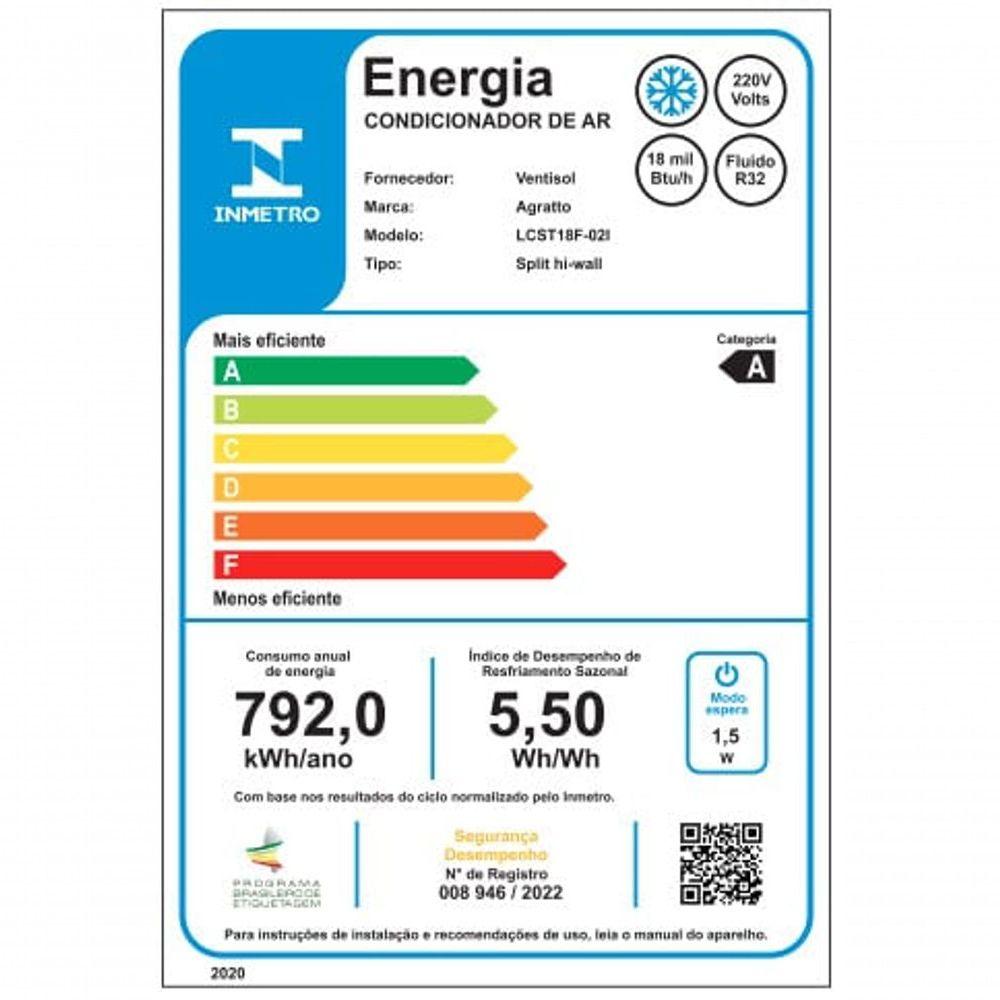 Ar Condicionado Split Hi Wall Agratto Liv Top Inverter 18.000 Btus Frio 220v R-32