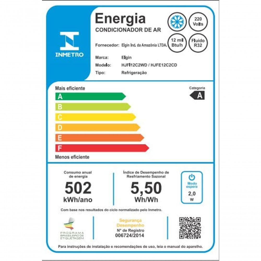 Ar Condicionado Split Hi-wall Eco Inverter II Wi-fi Elgin 12.000 Btus Frio 220V R-32Ar Condicionado Split Hi-Wall Eco Inverter II Wi-Fi Elgin 12.000 Btus Frio 220v R-32Conforto, economia e tecnologia na medida certa para o seu ambiente!Se você procura um ar-condicionado eficiente, silencioso e com excelente custo-benefício, o Elgin Eco Inverter II 12.000 Btus é a escolha ideal.Com tecnologia Inverter, ele garante mais economia de energia ao ajustar automaticamente a velocidade do compressor, mantendo a temperatura desejada com muito mais eficiência.Tecnologia Wi-Fi Integrada: Controle a temperatura do seu ambiente de onde estiver, direto do seu smartphone. Praticidade e conforto na palma da sua mão!Design Moderno e Discreto: Com visual clean e sofisticado, se integra perfeitamente a qualquer estilo de ambiente – seja residencial ou comercial.Função Turbo e Modo Sleep: Resfriamento rápido com apenas um toque e ajuste inteligente da temperatura durante a noite para noites de sono mais agradáveis.Silencioso e Potente: Ideal para ambientes de até 20m², oferece alto desempenho sem ruídos incômodos.Escolha qualidade, inovação e sustentabilidade.Garanta já o seu Ar Condicionado Elgin Eco Inverter II e transforme seu ambiente em um espaço ainda mais confortável, inteligente e econômico!Classificação AO Eco Inverter II da Elgin conta com uma altíssima eficiência energética com classe A.Gás Ecológico R32 AElgin preocupada com o meio ambiente traz para o mercado a linha Inverter Eco Inverter II com gás ecológico R32. Este fluído refrigerante não agride a camada de ozônio e tem baixo potencial de aquecimento global (G.W.P).Qualidade Do Aro Ar-condicionado Split High Wall Eco Inverter II Elgin possui um filtro superior de alta capacidade de filtragem e de fácil remoção para limpeza, filtro de íons de prata e um filtro Ionizador ativo, que juntos combatem às bactérias, vírus, ácaros e fungos presentes no ar mantendo o ambiente mais limpo e seguro.WI-FI IntegradoCom o aplicativo AC Elgin Air você pode controlar seu Eco Inverter 2 via Wi-Fi.Ajuste a temperatura, ligue ou desligue o seu aparelho de onde estiver, até mesmo por comando de voz com a Alexa e o Google Assistente.Garantia Na Medida CertaPossui garantia de 3 anos válida para instalações realizadas por parceiros credenciados Elgin. A garantia de 10 anos no compressor é válida em compras com emissão da nota fiscal para o consumidor e respeitadas as condições estabelecidas no certificado de garantia e nos respectivos manuais dos produtos.Display InvisívelA unidade interna possui um display invisível indicando a temperatura, que se acende ao ligar a unidade, e se você preferir, aperte a tecla visor” para desligar o display para maior conforto durante a noite.Controle Remoto IluminadoControle remoto sem fio com design moderno e visor iluminado, que facilita o uso em ambientes com baixa luminosidadeCapacidade de Climatização: 12.000 BTU/hVoltagem: 220VCiclo: FrioClassificação Inmetro: Classe AGarantia: 36 MesesVOLUMES DE EMBALAGEM: 2Serpentina: CobreCapacidade de Refrigeração (BTU/h): 12.000 BTUSmart Wi-Fi: SimClassificação INMETRO: AControle de temperatura: SimGarantia do fornecedor: SimFiltro de proteção ativa: SimCor da Evaporadora: BrancaDirecionadores de Ar: SimMedida Evaporadora (A x L x P) cm: 29,5 x 75,5 x 20Medida Condensadora (A x L x P) cm: 45,5 x 65 x 23,5Função Timer: SimGás Refrigerante: R-32Frequência (Hz): 60 HzNível de Ruído Unidade Interna (dB): 39 dBNível de Ruído Unidade Externa (dB): 53 dBConexão da Tubulação Liquida (mm): 1/4''Código Evaporadora: HJFI12C2WDCódigo Condensadora: HJFE12C2CDCódigo Modelo: HJFE12C2CDCódigo Interno: 46233Garantia: 36 meses (para instalação com profissional credenciado)