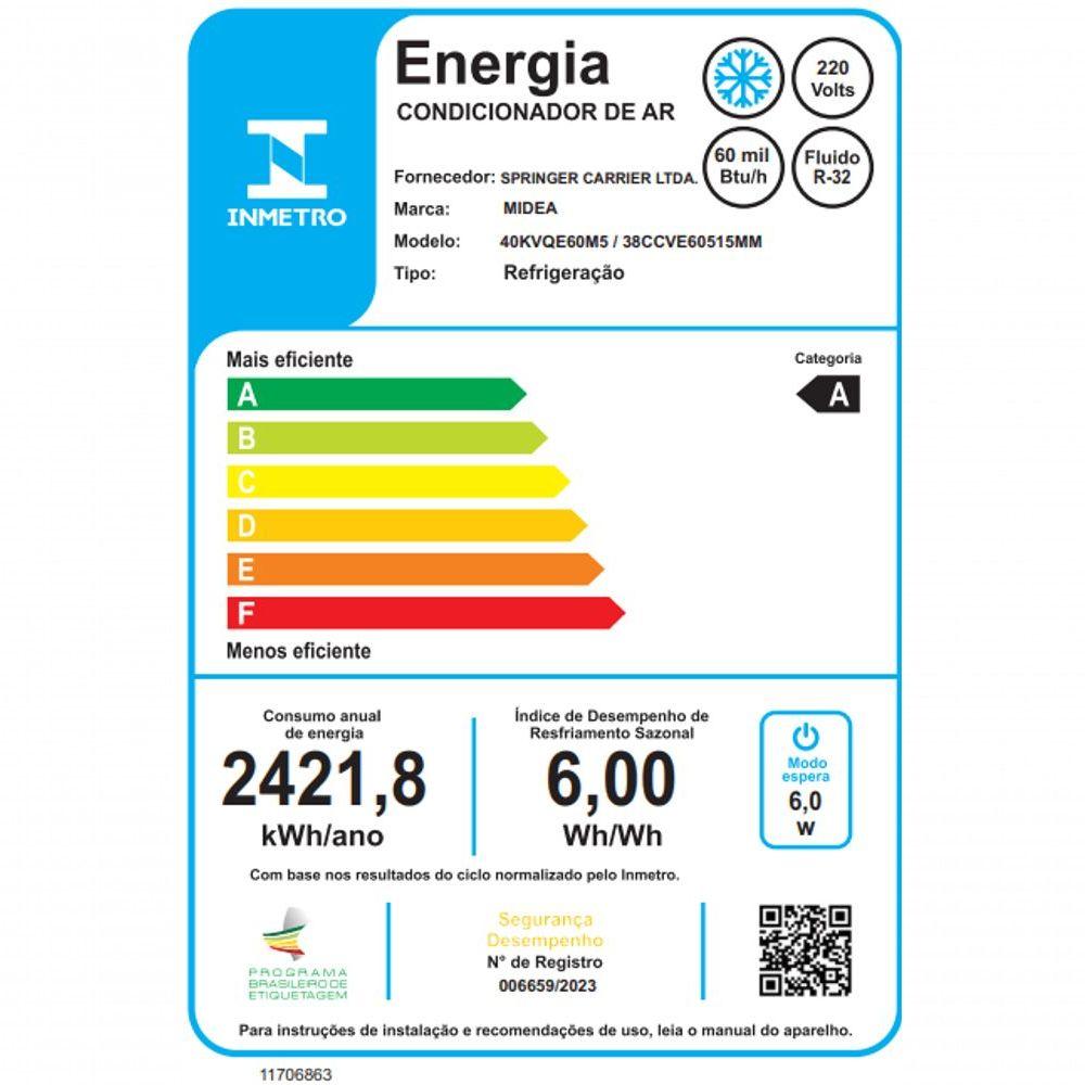 Ar Condicionado Split Cassete Inverter 4 Vias Wi-fi Midea 60.000 Btus Frio 220V R-32 Ar Condicionado Split Cassete Inverter 4 Vias Wi-Fi Midea 60.000 Btus Frio 220v R-32 Conforto, tecnologia e eficiência para grandes ambientes! O Ar Condicionado Split Cassete 4 Vias Inverter Midea 60.000 Btus é a escolha perfeita para quem busca alto desempenho, economia de energia e design moderno. Com capacidade para climatizar amplas áreas com total uniformidade, ele distribui o ar em quatro direções, garantindo conforto térmico em todos os cantos do ambiente. Tecnologia Inverter Economize energia com o sistema Inverter, que ajusta automaticamente a velocidade do compressor, mantendo a temperatura ideal sem oscilações bruscas. Mais conforto e até 40% de economia na conta de luz! Fluxo de Ar 360° O design de 4 vias permite uma distribuição homogênea do ar, eliminando pontos quentes e frios no ambiente — perfeito para escritórios, lojas, restaurantes e espaços amplos. Conectividade Wi-Fi Controle seu ar-condicionado de qualquer lugar com o aplicativo MideaAIR. Ligue, desligue e ajuste a temperatura direto do seu smartphone, com praticidade total. Gás Ecológico R-32 Mais eficiência e respeito ao meio ambiente! O gás R-32 tem baixo potencial de aquecimento global (GWP) e oferece melhor performance de refrigeração. Silencioso e Discreto Operação silenciosa e instalação embutida no teto, mantendo o ambiente confortável, elegante e livre de ruídos. 60.000 Btus de potência — ideal para grandes ambientes Tecnologia Inverter com economia de energia Controle Wi-Fi via aplicativo Gás ecológico R-32 Design Cassette 4 vias com fluxo de ar 360° Operação silenciosa e durável O split Cassete Inverter Midea 4 Vias é o equipamento ideal para quem precisa climatizar grandes ambientes residenciais, salas amplas e conjuntos comerciais com distribuição uniforme no ambiente e ótima integração arquitetônica. O sistema conta com a tecnologia de compressores de velocidade variável e fluido refrigerante ecológico R-32, que proporcionam grande economia de energia. O split Cassete Inverter Midea 4 Vias está disponível na capacidade de 60.000 BTU/h, nos ciclos só Frio e conta com conectividade Wi-Fi nativo. Conectividade Wi-Fi nativa, que permite que a unidade seja comandada a distância através do aplicatico SmartHome e compatível com assistente de voz Google e Alexa Função Breezeless: suaviza o fluxo de ar e torna o ambiente ainda mais agradável Seleção para controle individual dos defletores de ar: permite a abertura ou fechamento individual de cada um dos 4 defletores de saída de ar Bomba de Dreno incorporada: evita acúmulo de água na unidade interna e gotejamento. Operação silenciosa: Ventilador interno com design de alta tecnologia que proporciona baixo nível de ruído. Painel frontal removível: Facilita a manutenção e acesso aos componentes internos sem a necessidade de retirar o produto do teto ou forro. 4 velocidades de ventilação: baixa, média, alta e automática 4 modo de Funcionamento: Resfria, desumidifica, ventila e aquece Função Oscilar/Swing: Distribuição uniforme de ar em todo o ambiente por meio de defletores laterais. Temporizador/Timer ON/OFF: Programa o horário para ligar e desligar Controle remoto com backlight (iluminação do display) Display digital na unidade interna: Facilita a leitura das informações e funções escolhidas Garantia: para instalação com profissional credenciado Fabricante: Midea Ciclo: Frio Voltagem: 220V Serpentina: Cobre Capacidade de Refrigeração (BTU/h): 60.000 BTU Controle de temperatura: Sim Garantia do fornecedor: Sim Cor da Evaporadora: Branco Fonte de alimentação: Elétrica Direcionadores de Ar: Sim Medida Evaporadora (A x L x P) cm: 28,7 x 83 x 83 Medida Condensadora (A x L x P) cm: 76 x 62,6 x 62,6 Gás Refrigerante: R-32 Tipo De Fonte De Alimentação: Elétrica Tipo De Ar Condicionado: Inverter Código Evaporadora: 40KVQE60M5 Código Condensadora: 38CCVE60515MM Código Modelo: 38CCVE60515MM Código Grelha: 40KWFLBM Código Interno: 48372 VOLUMES DE EMBALAGEM: 2 Garantia: 12 Meses