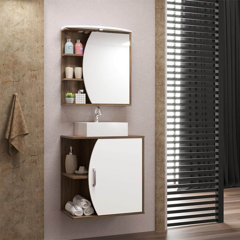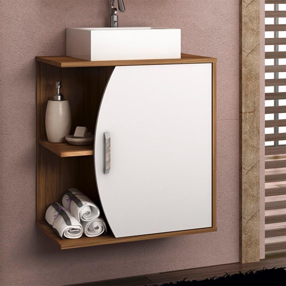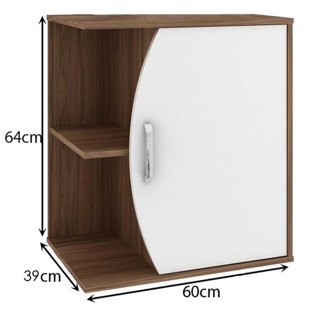 Armário Balcão Gabinete Para Banheiro 60Cm Branco Nogal