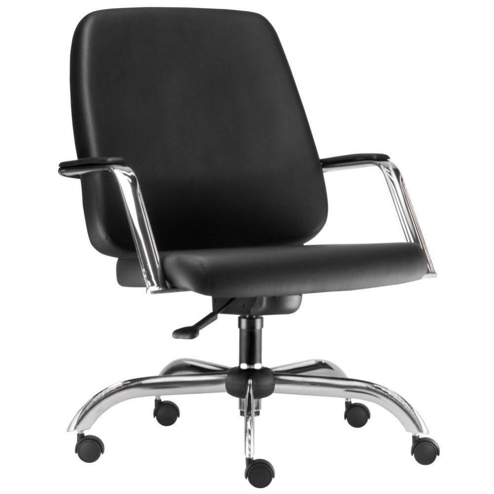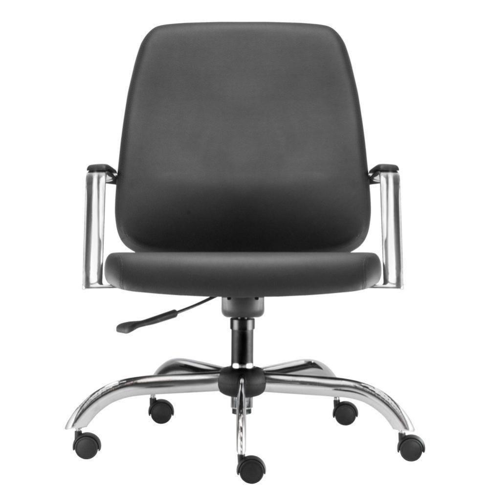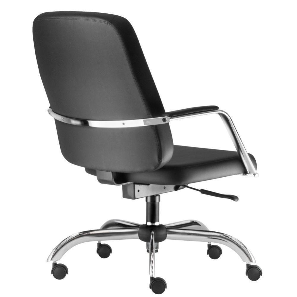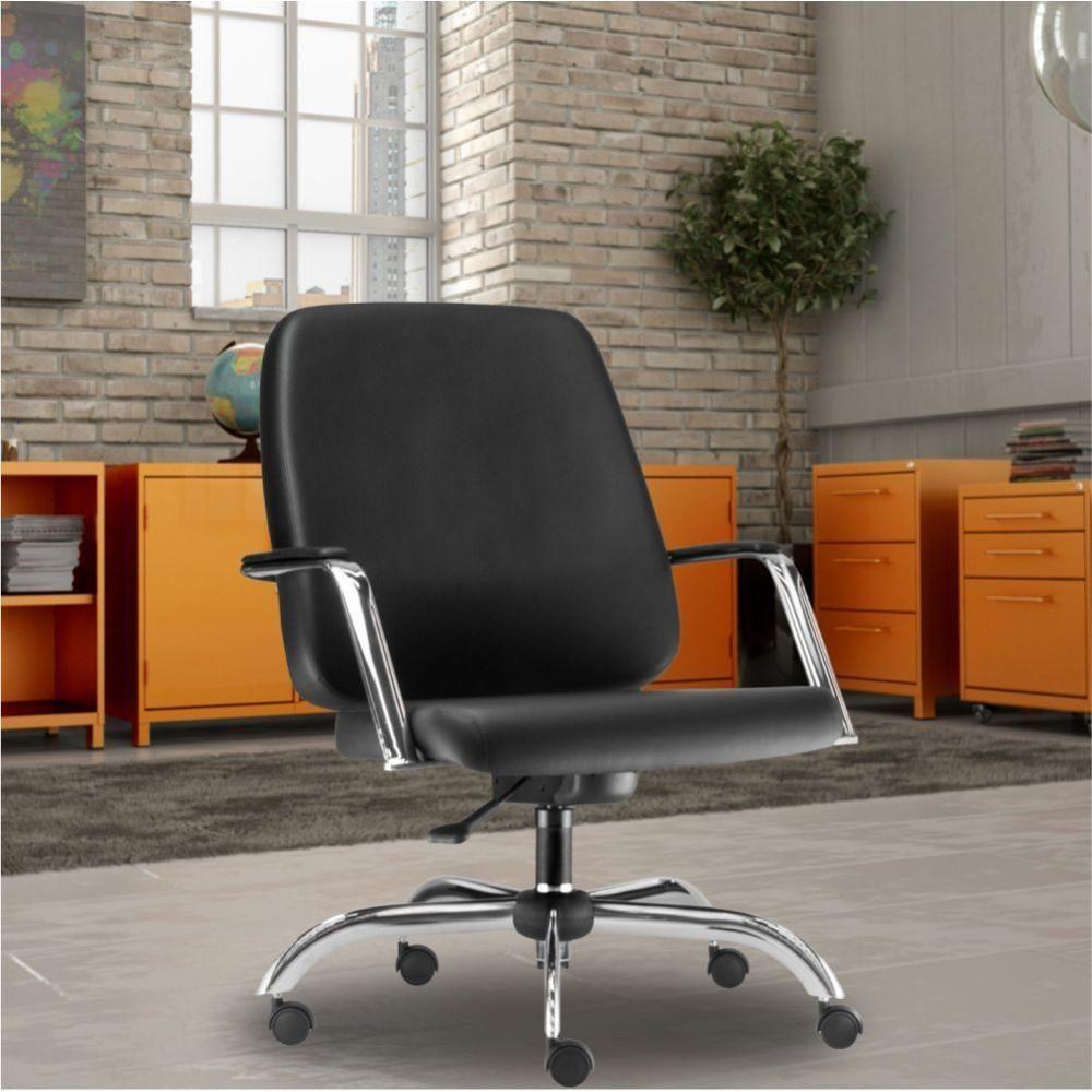 Cadeira Executiva Diretor Base Giratória Cromado Maxxer F02 Couro Ecológico Preto - Lyam DecorDescrição do produto: A cadeira Maxxer foi projetada para oferecer em resistência e design, sem deixar a leveza e personalidade de lado. Espuma de altíssima qualidade, revestimento sofisticado e conforto inigualável. Segurança e saúde de acordo com a necessidade do usuário. Este modelo possui base giratória, com regulagem de altura. Perfeita para ambientes corporativos, essa cadeira traduz qualidade necessária para comodidade do usuário. Garanta já a sua! Dimensões do produto (L x A x P) 75 cm x 98,5 cm x 75,5Medidas internas: Largura assento: 60 cm Altura encosto: 58 cm. Largura encosto: 59 cm. Altura do chão ao assento: 63,5 a 76,5. Profundidade do assento: 48 cm. Altura máxima: 100,5 Regulagem de altura: 42 cm a 55 cm.Características:Cadeira de alta robustez. Assento e encosto estruturados em compensado multi laminado de alta espessura, estofados com espuma flexível de poliuretano, moldada, de alta densidade, alta resiliência e isenta de CFC. Base tubular em aço carbono de seção elíptica fixados no assento e encosto. Acabamento cromado. Cadeira 100% nacional. Base com desempenho mecânico superior ao especificado nos requisitos das Normas ABNT NBR 13962/06 (Brasileira) e ANSI BIFMA X5.1/2011 (Estados Unidos). Rodízio com certificação ABNT de qualidade. Reforço metálico externo, melhorando a performance estrutural do produto. Regulagem de altura do assento. Revestimento em Couro Ecológico. Suporta até 150 Kg.- Por se tratar de estofado as medidas podem ter uma pequena variação de até 3 cm. - A tonalidade do produto real poderá ter ligeira variação devido o lote de tecidos.Observações importantes: A montagem será de responsabilidade do comprador; Responsabilizamo-nos pela entrega em todo território nacional, até onde as rodovias alcançam, entregas fluviais ou aéreas devem ser cotadas a parte; As imagens são ilustrativas, não acompanham objetos de decoração e eletrônicos; Não nos responsabilizamos, no ato da entrega, por subir escadas/elevadores ou transporte por guincho em apartamentos. Eventuais despesas são de responsabilidade do comprador; Confira as dimensões do produto e certifique-se de que passará normalmente por supostos elevadores, portas, escadas e/ou corredores de sua residência; NA