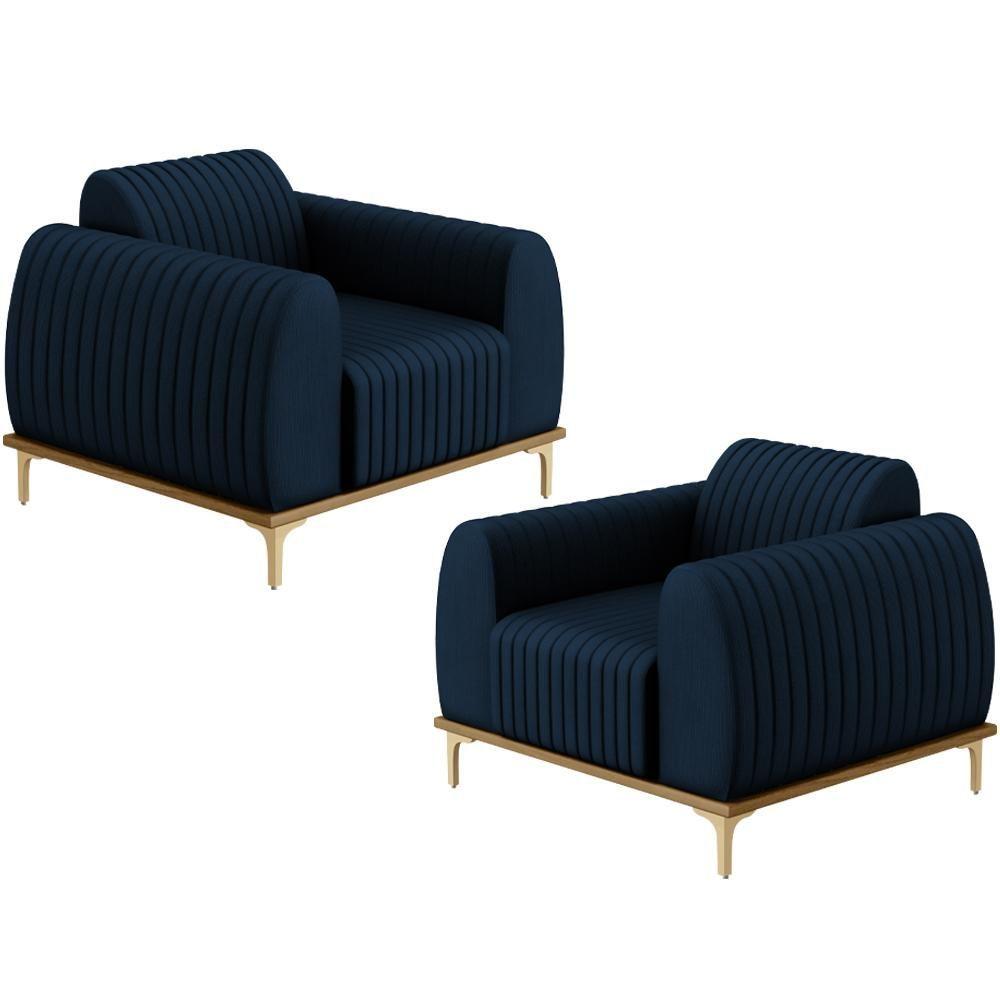 Kit 02 Poltronas Pés D'Ouro Molino Veludo Azul Oxford C-304