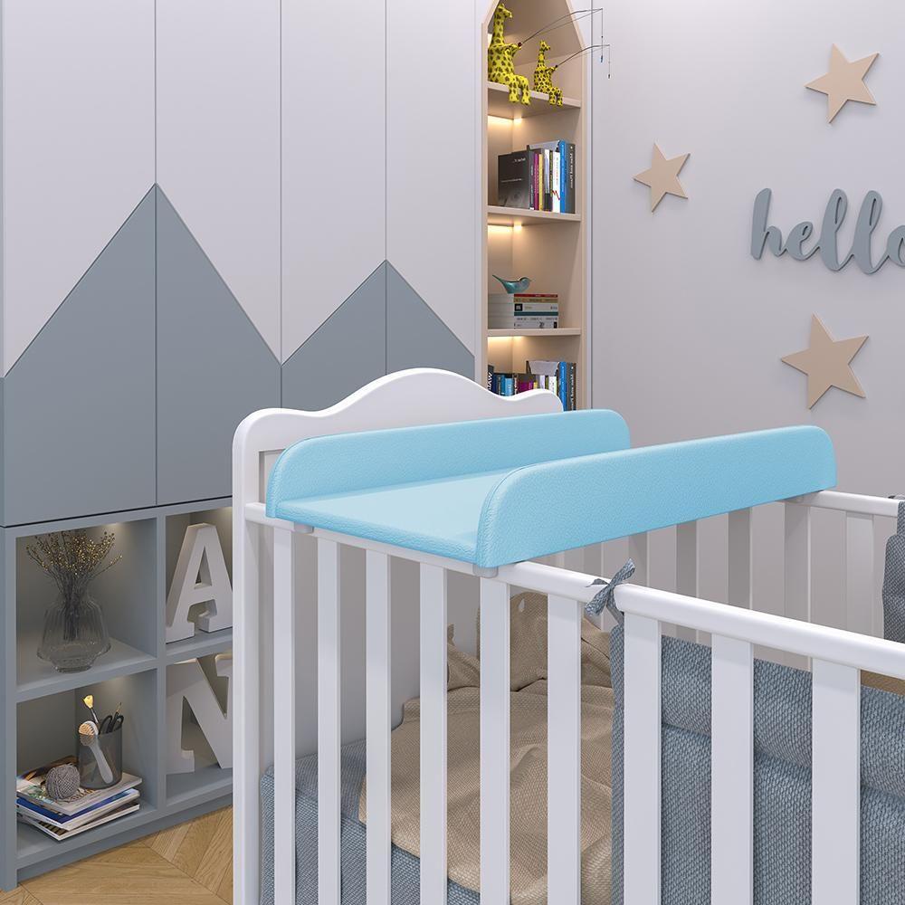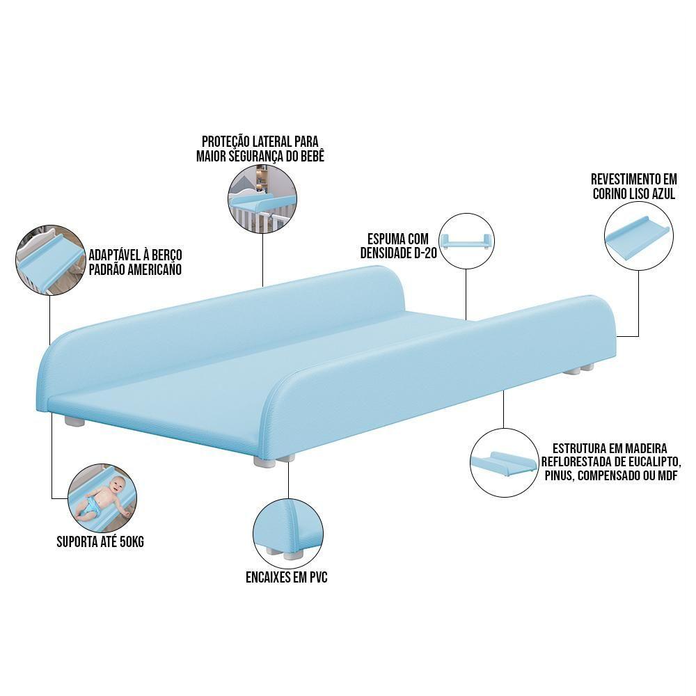 Trocador De Fraldas Almofadado Para Berço Corino Azul P02