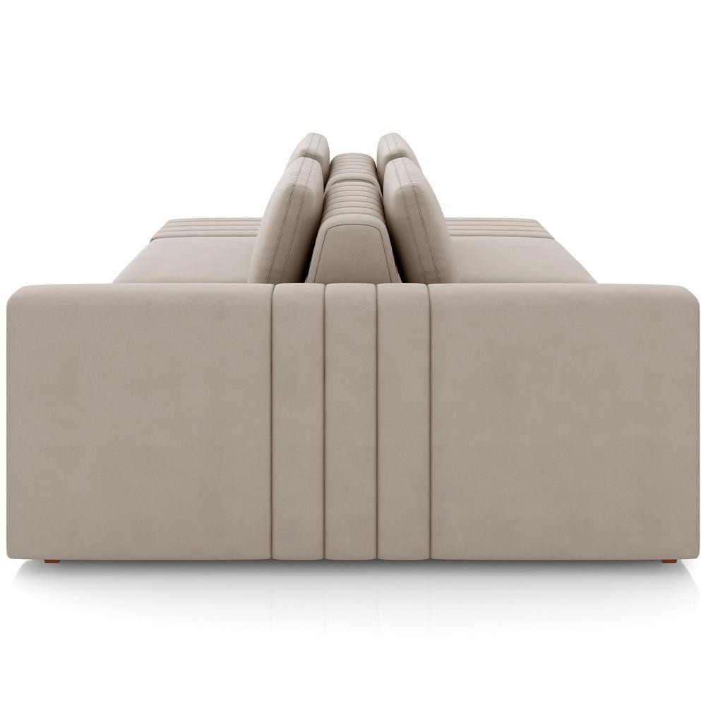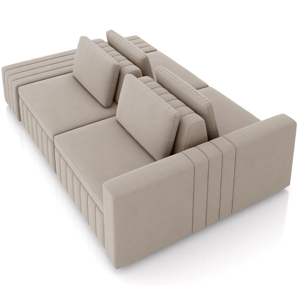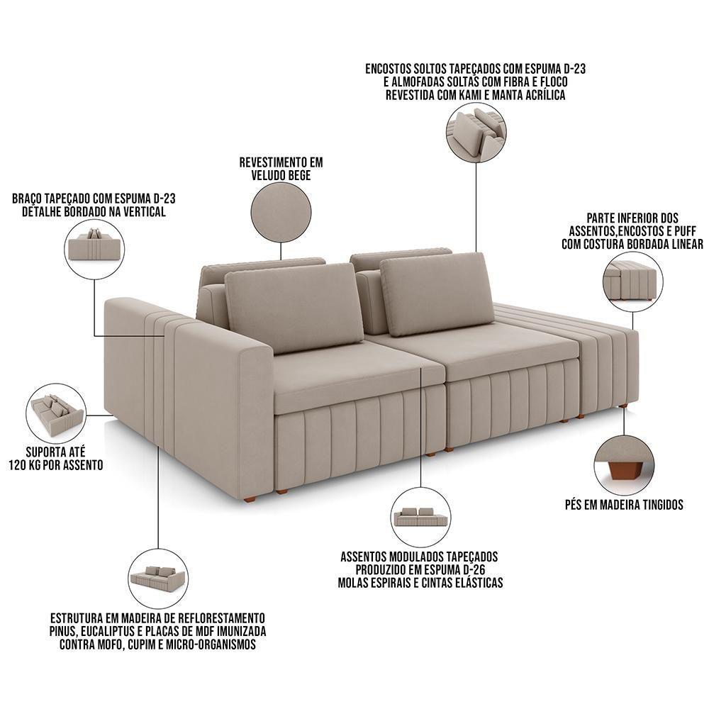 Sofá Ilha Com Puff Para Sala Living 245cm Amber M03 Veludo Bege - Lyam Decor