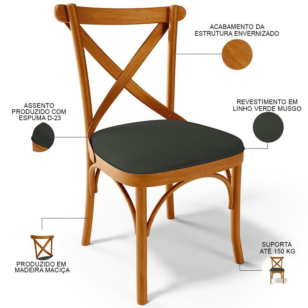 Kit 04 Cadeiras Para Sala De Jantar E Estar Living Estofada ávila L02 Linho Verde Musgo - Lyam