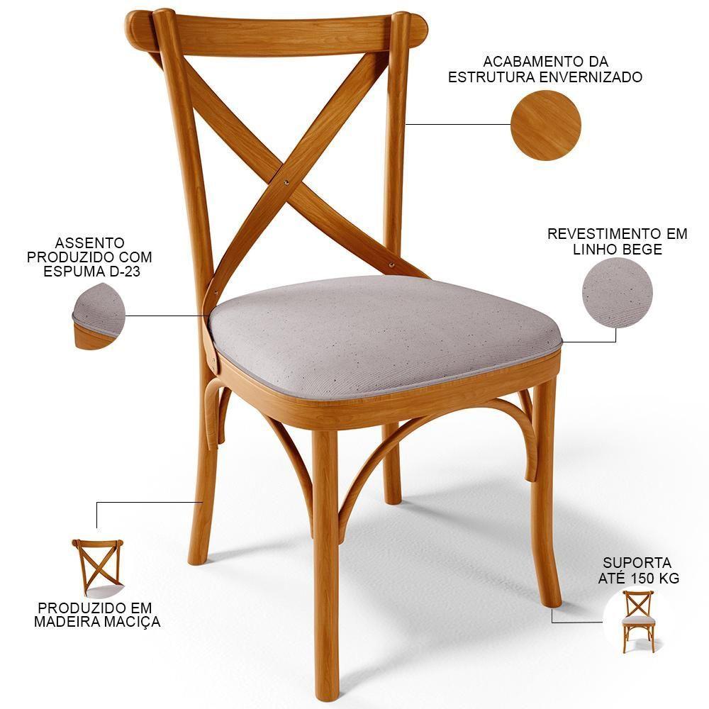 Kit 04 Cadeiras Para Sala De Jantar E Estar Living Estofada ávila L02 Linho Bege - Lyam Inspirada no elegante mobiliário parisiense do século 19 e pensada para proporcionar máximo conforto, a Cadeira Ávila combina estilo e funcionalidade de uma maneira única. Estruturada em madeira maciça, possui detalhes curvilíneos que trazem suavidade e delicadeza a peça, seu acabamento envernizado a torna um mobiliário de destaque e trás durabilidade e confiança ao seu uso. Possui assento estofado, que proporciona ao seu usuário a sensação de comodidade ideal e ainda adiciona classe a qualquer ambiente. Seu design a torna uma peça versátil que abre portas a sua imaginação pois pode ser disposta em salas de jantar, estar, e espera, quartos, halls de entrada e cozinhas. Expresse seu bom gosto, e adquira já essa obra-prima da sofisticação! Dimensões do Produto (L x A x P) 49,5 x 86,5 x 55 cm Medidas Internas: Largura do assento: 44,5 cm Profundidade do assento: 43 cm Altura do encosto ao assento: 40 cm Largura total do encosto: 49,5 cm Altura do chão ao assento: 50 cm Largura do encosto: 38 cm Características: Estrutura em Madeira Maciça, com acabamento envernizado. Assento estofado com espuma D-23. Revestimento em Linho na cor Bege, de ótima qualidade. Peso suportado de até 150 kg. - Produto entregue montado. - Por se tratar de estofado as medidas podem ter uma pequena variação de até 3 cm. - A tonalidade do produto real poderá ter ligeira variação devido o lote de tecidos. - A limpeza deve ser feita com pano levemente umedecido em água limpa, sem esfregar, não utilizar produtos abrasivos, desengordurantes, álcool ou solvente. Observações importantes: - Produto para uso residencial em ambiente interno, não devendo ficar exposto diretamente ao sol, calor e umidade excessivos. - Pode haver alguma diferença de tonalidade entre a imagem e o produto real, por conta do tratamento de imagens e a calibração de cores do seu monitor. - As imagens são meramente ilustrativas, não acompanham objetos de decoração e eletrônicos. - Ao receber a mercadoria, o cliente deve verificar as condições da embalagem, caso haja alguma não assine o de . - Montagem, desmontagem e outras instalações serão de responsabilidade do cliente. Não nos responsabilizamos, no ato da , por subir escadas/elevadores ou pelo por guincho em apartamentos. Eventuais despesas são de responsabilidade do comprador. - Confira as dimensões do produto e certifique-se de que passará normalmente por supostos elevadores, portas, escadas e/ou corredores de sua residência. Color: Bege | ColorFamily: Bege | ColorSimple: Bege | ColorSupplier: Bege | Material: Madeira Maciça | MaterialFamily: Madeira | Model: Ávila | OriginCountry: | OriginState: PR | ProductContents: 04 Cadeiras | ProductHeight: 86 cm | ProductInstructions: Produto para uso em ambiente interno, nao devendo ficar exposto ao sol, calor e umidade excessivos. | ProductLength: 55 cm | ProductWarranty: 90 dias após o do produto | ProductWeight: 32 kg | ProductWidth: 49 cm | SizeDescription: Altura: 86 cm Largura: 49 cm Profundidade: 55 cm | SupplierSimpleName: Kit 04 Cadeiras Para Sala de Jantar e Estar Living Estofada Ávila L02 Linho Bege - Lyam