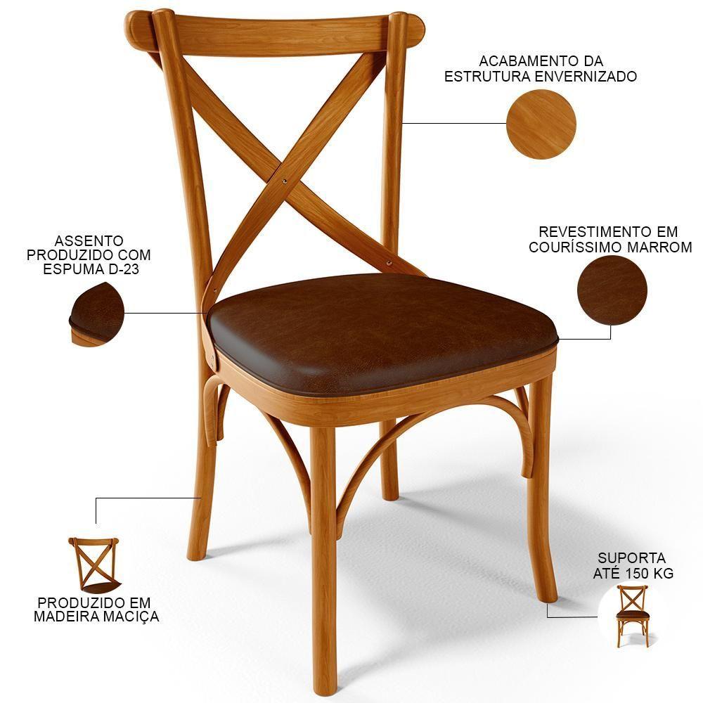 Kit 04 Cadeiras Para Sala De Jantar E Estar Living Estofada ávila L02 Couríssimo Marrom - LyamInspirada no elegante mobiliário parisiense do século 19 e pensada para proporcionar máximo conforto, a Cadeira Ávila combina estilo e funcionalidade de uma maneira única. Estruturada em madeira maciça, possui detalhes curvilíneos que trazem suavidade e delicadeza a peça, seu acabamento envernizado a torna um mobiliário de destaque e trás durabilidade e confiança ao seu uso. Possui assento estofado, que proporciona ao seu usuário a sensação de comodidade ideal e ainda adiciona classe a qualquer ambiente. Seu design a torna uma peça versátil que abre portas a sua imaginação pois pode ser disposta em salas de jantar, estar, e espera, quartos, halls de entrada e cozinhas. Expresse seu bom gosto, e adquira já essa obra-prima da sofisticação! Dimensões do Produto -(L x A x P): 49,5 x 86,5 x 55 cm -Largura do assento 44,5 cm -Profundidade do assento: 43 cm -Altura do encosto ao assento: 40 cm -Largura total do encosto: 49,5 cm -Altura do chão ao assento: 50 cm -Largura do encosto: 38 cm Características: Estrutura em Madeira Maciça, com acabamento envernizado. Assento estofado com espuma D-23. Revestimento em Couríssimo na cor Marrom, de ótima qualidade. Peso suportado de até 150 kg. - Produto entregue montado. - Por se tratar de estofado as medidas podem ter uma pequena variação de até 3 cm. - A tonalidade do produto real poderá ter ligeira variação devido o lote de tecidos. - A limpeza deve ser feita com pano levemente umedecido em água limpa, sem esfregar, não utilizar produtos abrasivos, desengordurantes, álcool ou solvente. Observações importantes: - Produto para uso residencial em ambiente interno, não devendo ficar exposto diretamente ao sol, calor e umidade excessivos. - Pode haver alguma diferença de tonalidade entre a imagem e o produto real, por conta do tratamento de imagens e a calibração de cores do seu monitor. - As imagens são meramente ilustrativas, não acompanham objetos de decoração e eletrônicos. - Confira as dimensões do produto e certifique-se de que passará normalmente por supostos elevadores, portas, escadas e/ou corredores de sua residência.